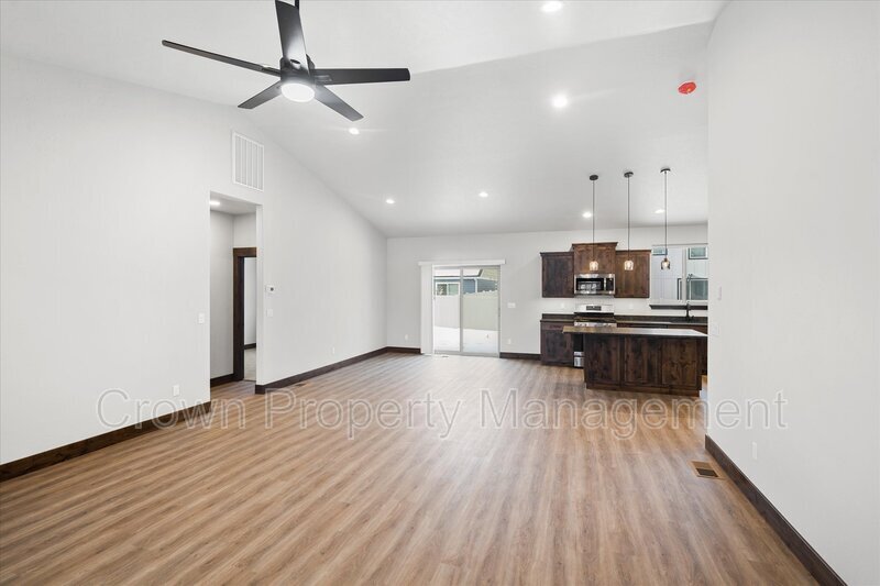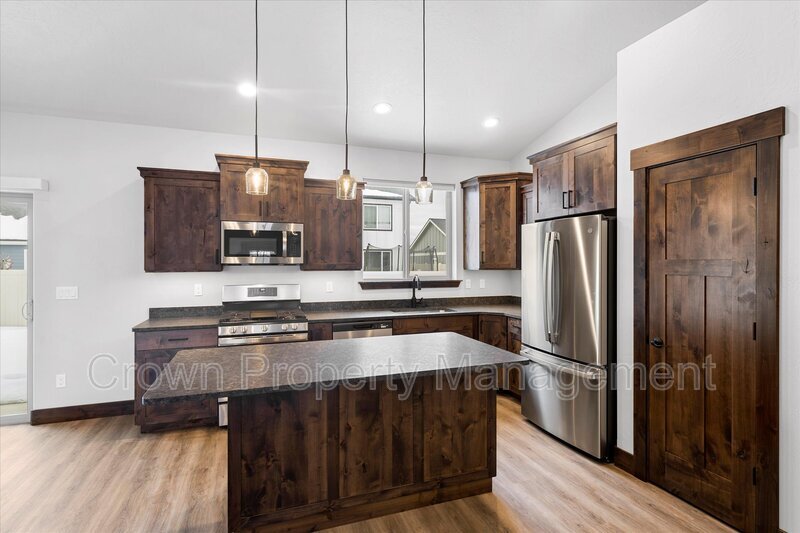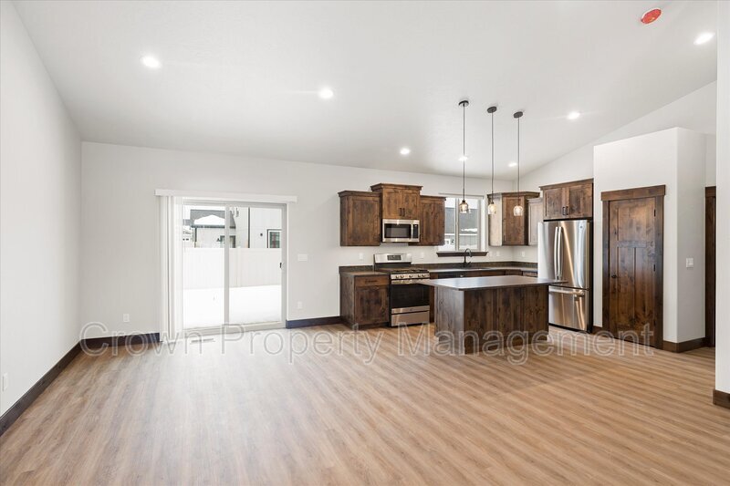 Inviting ranch style home that features 3-bedrooms, 2-bathrooms, 2-car attached garage, a large open concept living room, kitchen and dining area with vaulted ceiling and sliding glass door that opens to the fenced backyard. Kitchen features wood cabinets, dishwasher, garbage disposal, and large center island. This home comes with air conditioning, lawn irrigation, water softening system, leathered granite countertops, laundry room with sink, hard surface flooring in the main living areas, and carpet in the bedrooms. The primary bedroom has an ensuite bathroom, and walk-in closet. Home has laundry hookups in laundry room. Washer and dryer are not included. Owner pays for lawncare. Tenant is responsible for snow removal. No pets preferred, but small animals may be considered. Tenant responsible for all utilities: Gas, Electric, Water/sewer, and trash. First month rent + security deposit due at lease signing. 1-year lease required. This property is professionally managed by Shannon McNamee of Crown Property Management PMP-RPM-LIC-53352. Equal Opportunity housing provider.