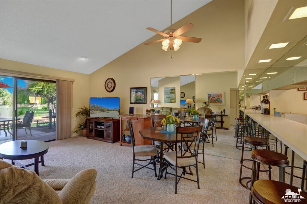 This beautifully maintained 2-bedroom,2-bath condo is partially furnished and ideally situated on the 11th fairway,offering stunning mountain views and a peaceful golf course setting. Enjoy outdoor living at its finest on the spacious private patio,complete with ample seating and plenty of room for barbecuing--perfect for relaxing or entertaining guests. Inside,the open floor plan seamlessly connects the living area to the kitchen,creating a bright and welcoming space ideal for gatherings. The kitchen and living room feature a convenient counter bar with additional seating,enhancing the home's entertaining appeal. Both bedrooms are generously sized,offering comfort and privacy for residents and guests alike. A private garage adds convenience and secure parking. Located within Palm Desert Resort,residents enjoy access to exceptional amenities including an 18-hole golf course,20 pools and spas,tennis facilities,and a full-service clubhouse featuring a lounge,dining room,pro shop,and picturesque lake views. This is truly a must-see property. Property will have updated pictures once it is vacant we now have laminate flooring and a green golf course. MLS # 219144215