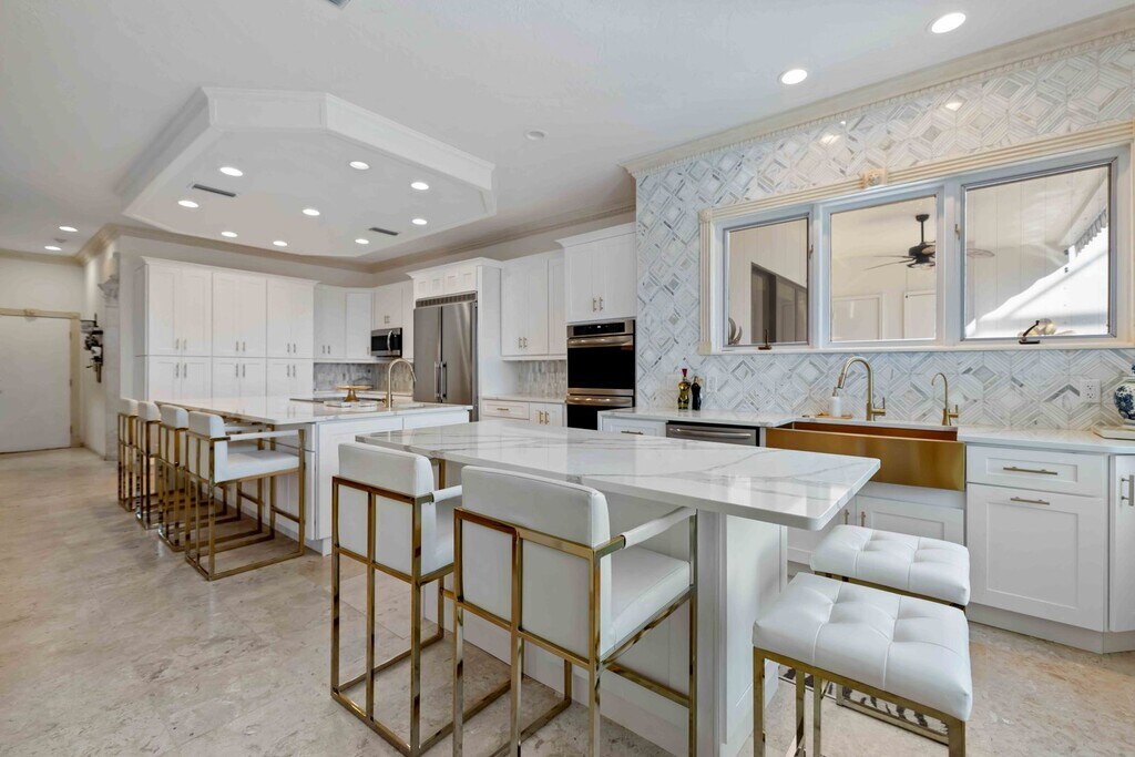 Luxury Golf-Course Rental with very large 4 great bedrooms Live resort-style in this estate with nearly 7,000-SF interior space and a total of 9,000-SF inside a prestigious gated golf community with panoramic lake and fairway views. Designed for privacy and grand entertaining, the residence features four expansive primary suites—each with a spa-caliber bath—a private movie theater, a chef’s/entertainer’s kitchen that opens to an oversized entertainment room, a separate formal living room, and a dedicated office. Sliding glass walls connect to a vast screened outdoor lanai with summer kitchen, lounge and dining zones—perfect for sunset gatherings over the water and 18th fairway. The community’s pedigree and amenities attract discerning residents seeking space, security, and a true country-club lifestyle. Inside, the home showcases first-class finishes throughout—marble and natural stone flooring, bespoke millwork, and an architectural chandelier that anchors the grand entertaining spaces. Curated designer furnishings elevate every room, while lifestyle luxuries include a professional piano, tournament-grade pool table, and multiple statement fireplaces for intimate ambiance. The result is a turnkey, magazine-worthy retreat that blends gallery-level style with effortless everyday comfort—ideal for luxury Sarasota living. Highlights ~7,000 interior SF of luxury living 4 king-size primary suites with lavish baths Home theater + entertainment room + separate living room Showcase kitchen with premium appliances & large island Dedicated office Expansive screened lanai with outdoor kitchen Wide lake & golf-course views in a guard-gated community Luxury Sarasota rental • golf-course estate • lakefront views • multiple primary suites • home theater • entertainer’s kitchen • gated community. Inquire for rates, availability, and private showings.