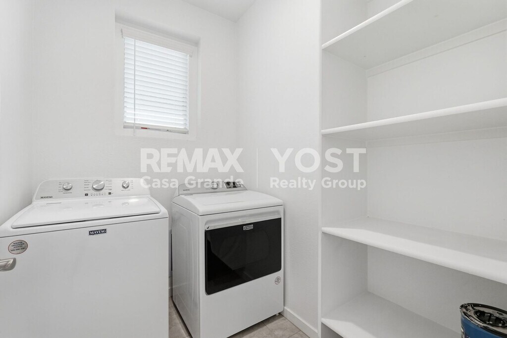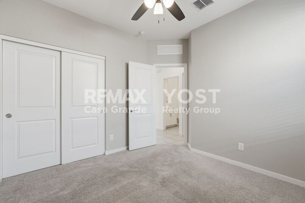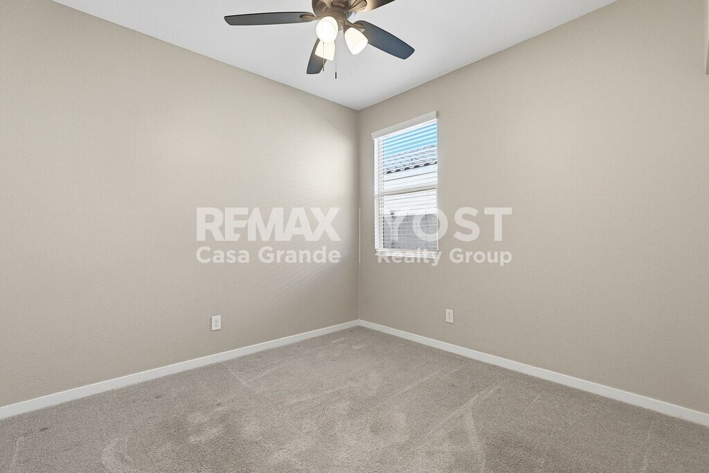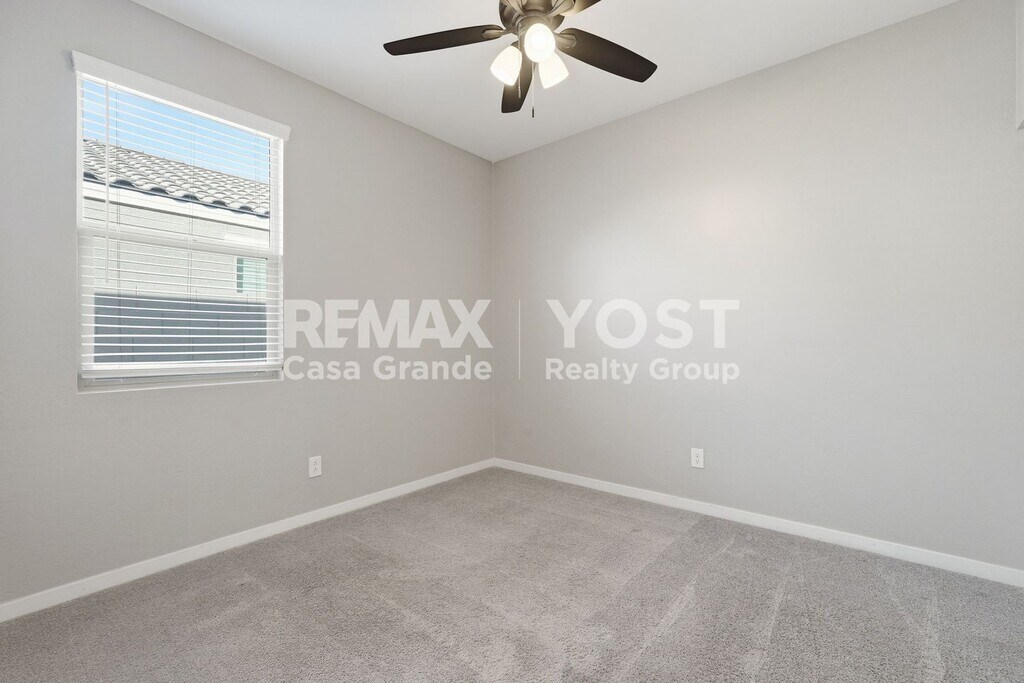 Enjoy easy Arizona living in this bright, modern home with an open layout made for comfort and entertaining. The spacious main living area features sleek tile flooring, recessed lighting, and plenty of natural light flowing in through large sliding glass doors leading to a covered patio. The kitchen is a standout with granite countertops, stainless steel appliances, crisp white cabinetry, and a large island perfect for meal prep or casual dining. Cozy carpeted bedrooms and stylish bathrooms offer a clean, move-in-ready feel throughout. Step outside to a low-maintenance backyard with pavers, gravel landscaping, and block fencing—ideal for relaxing without the upkeep. Located in Maricopa with convenient access to local shopping, dining, and parks, this home is ready for you to settle in and enjoy. Schedule your showing today!