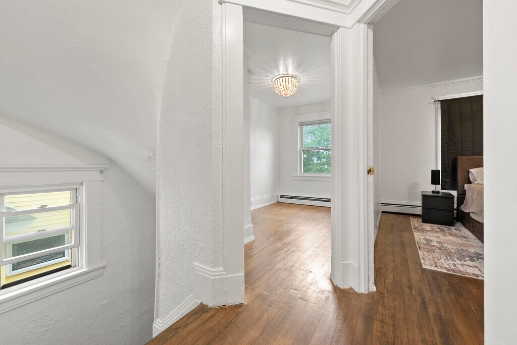Nestled on a tree-lined residential street, this spacious 2nd-floor apartment with a large attic is a versatile and inviting space. Featuring an updated kitchen and bathroom, and beautiful hardwood floors throughout, this apartment can be customized to fit your needs. Use it as a 2-bedroom with an office, a 1-bedroom with an office and living room, or a 1 bedroom, office and 2nd bedroom/living room combo. Conveniently located within walking distance to public transportation, shops, restaurants, James Braddock Park, and Blvd East, you'll enjoy the best of both tranquility and accessibility. Don't miss this opportunity to make this charming apartment your new home!