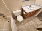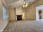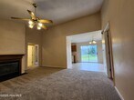 New Flooring Throughout!! Home is located in a cul-de-sac. From the covered front porch walk in to the living room. Living room has a vaulted ceiling, ceiling fan, and wood burning fireplace. Through the living room is the dining room and kitchen. Through the dining room is a hallway and at the end is the door leading into the two car garage with washer and dryer hook up. To the right of the fireplace in the living room is the hallway to the bedrooms and one full bath. The opposite side of the living room is the master bedroom with an on-suite bathroom. The sliding glass door in the dining room leads out onto the patio in the chain link, fenced in yard.