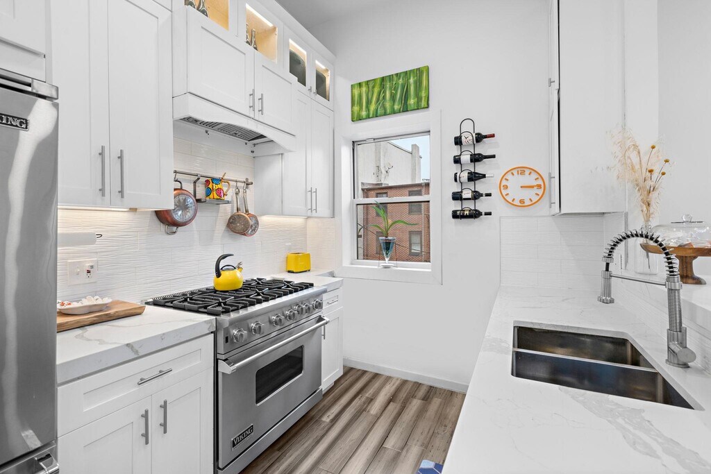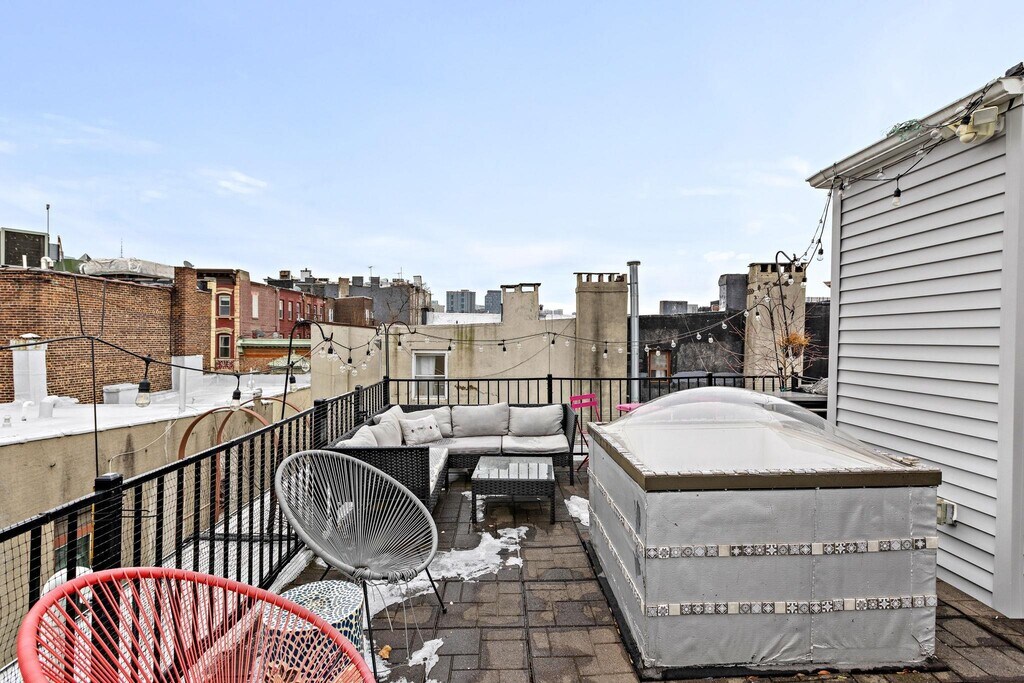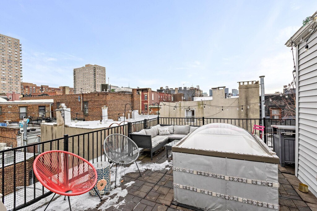 Bright and stylish 2-bedroom, 2-bathroom penthouse offering the perfect blend of urban living and comfort. This well-proportioned home features hardwood flooring throughout and a chef’s kitchen equipped with Viking appliances. The living area is accented by an exposed brick wall, adding warmth and character to the space. Both full bathrooms are finished with heated floors for added comfort. Upstairs, enjoy your own private rooftop terrace with sweeping city views, ideal for morning coffee, evening relaxation, or entertaining guests. Conveniently located near Hoboken Terminal, PATH, bus transportation, parks, shopping, and dining, this penthouse offers easy access to everything Hoboken has to offer. A rare opportunity to enjoy refined indoor living paired with exceptional private outdoor space. Schedule a viewing today and experience the Hoboken lifestyle firsthand.