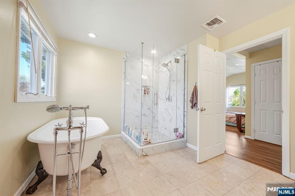 Step into a beautifully updated, move in ready home where space, style, and comfort come together seamlessly. This impressive three story residence welcomes you with striking double wood entry doors beneath a peaked portico, setting the tone for what’s inside. Sun-drenched interiors feature an open concept layout with gleaming hardwood floors, recessed lighting, and a modern, airy feel throughout. The living room is framed by oversized windows, creating a bright and inviting gathering space, while the dining room offers an elegant setting with a decorative chandelier, French doors, and abundant natural light. The heart of the home is the stunning eat-in kitchen, thoughtfully updated with white shaker cabinetry, marble countertops with a full-height backsplash, a spacious center island, and stainless steel appliances including a gas range with hood and French door refrigerator, perfect for everyday living and entertaining alike. With six generously sized bedrooms, including a serene primary suite complete with a private bath and walk-in closet. Outside, enjoy your own backyard retreat featuring a beautiful in ground pool. fence. An attached garage and wide driveway complete the package. A rare opportunity to rent a spacious, stylish home in a sought after Paramus location.