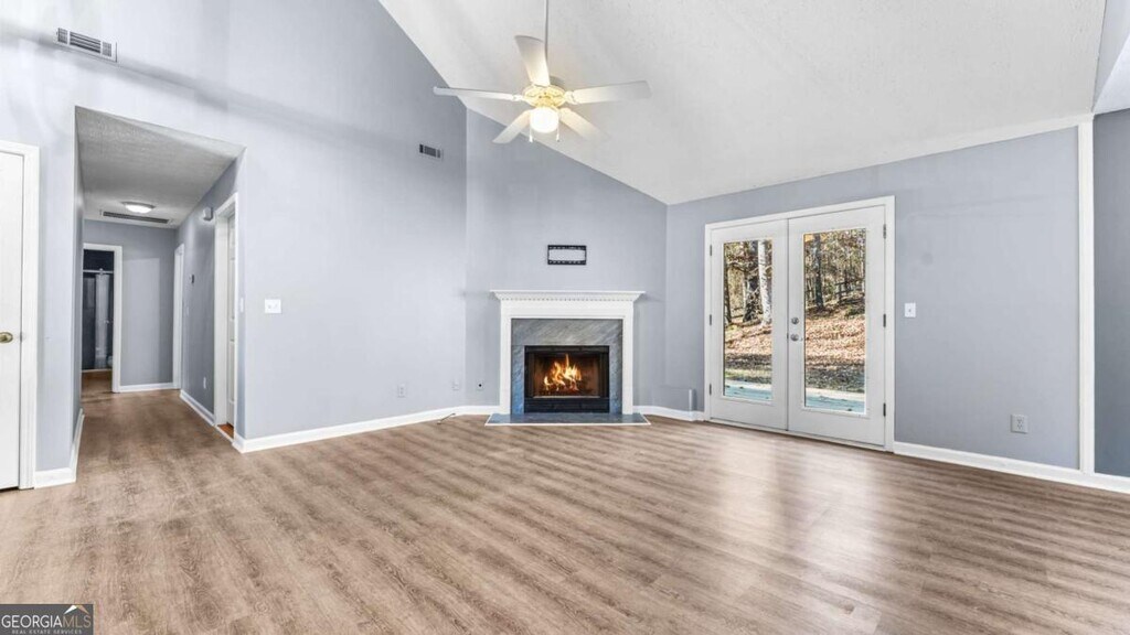 Welcome to your slice of paradise where comfort meets serenity and everyday feels like a vacation with almost one acre in a community connected to Fields Landing Park where there is a boat ramp and access to Lake Allatoona. If you are looking for the perfect home to park your boat or extra toys, this long driveway on a cul-de-sac is the perfect location. This magnificent ranch home features a full finished basement with a large private deck that spans the entire back of the home. The main level showcases a seamless flow between the living room, kitchen and dining area, creating an open-concept environment that's perfect for entertaining guests or spending quality time with loved ones. The vaulted ceiling and corner gas fireplace in the kitchen are a beautiful touch. The kitchen features white cabinetry, granite countertops, Stainless Steel Refrigerator, dishwasher, electric range and microwave. The large deck has just been pressure washed and is the perfect spot for your morning coffee or nature watching. The owner's suite features hardwood style flooring, a walk-in closet and updated full bath with walk-in shower and gorgeous tile work. Two additional bedrooms on the main level provide the perfect spaces for a home office, family members or guests, ensuring everyone feels right at home. The full bath on the main floor is completely updated with a walk-in shower, beautiful tile work and new vanity. The basement level has a separate exterior entry and consists of another bedroom, full bathroom, walk-in closet and fresh paint. The large open space can be another bedroom or place for entertainment. The backyard wood retreat is a great place to unwind. The location is near Highway 20 and downtown Canton giving you convenience to the interstate and multiple restaurants, shopping and events. This great neighborhood and beautiful home are ready for you to enjoy today!