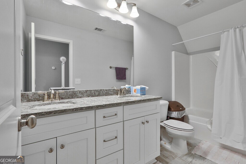 READY TO MOVE IN Gorgeous 3-Sided Brick Lakefront 5 Bedroom and 3 Full Bath Home in Desirable Bryant Lake Community. Popular Leah" Floorplan with Unfinished Daylight Basement, Studded for Bath, and Epoxy-painted floor. Covered Front Porch and Back Deck. Panoramic Lakeview from all windows facing the backyard, Upgraded Hardwood Floor throughout the entire main level, including both the master bedroom and secondary bedroom on the main level. Master Suite on main with His and Hers Walk-In Closets, access door to the Laundry Room from one of the closets, Garden Tub, Double Vanity, Tiled Shower, and Guest Bedroom/Office with Full Bath on Main and 3 more spacious Bedrooms with a full bath w/Double Sinks Upstairs, Spacious Dining Room with Upgraded Wainscotting, All Upgraded Granite Countertops, Huge Kitchen Island, Wall Microwave and Oven, Beautiful gray-tone Cabinets, Stainless Steel Appliances, Separate Gas Range, Decorative Vent Hood, upgraded Backsplash, Vaulted Ceiling in Family Room, Breakfast Area that can fit Dining Table looking out the lake, Oversized Covered Deck right off Breakfast Area looking out Amazing Lakeview, So much Potential with Daylight Basement with Epoxy Painted throughout the entire floor, Extended Porch right off the basement perfect for storing your kayak/canoe, Direct Access to the lake from the backyard, Bryant Lake boasts amenities that include swimming pool, tennis court, playground, sidewalks, and shared doc to the lake. Minutes from I-85, hospitals, restaurants, shopping, and much more!" MLS ID 10717122