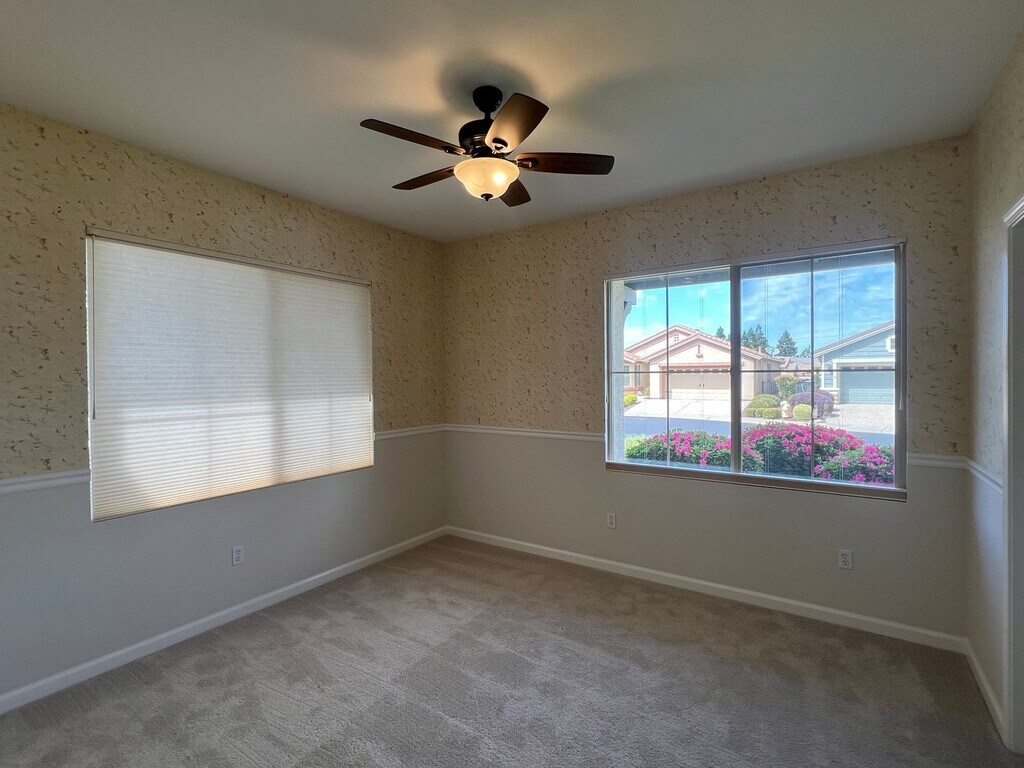This gorgeous home in Sun City Lincoln Hills features 2 bedrooms, 2 bathrooms and a versatile den/office with built-in custom desk and bookcases! The kitchen features updated stainless appliances, pull out custom cabinets, a center island and a pantry for extra storage. The spacious living area has a gas fireplace and looks out to the stunning backyard. The primary suite includes a large walk-in closet and the bath offers dual sinks, generous storage, and a walk-in shower. Outside you will find a beautiful yard complete with a large, covered patio with ceiling fans and raised vegetable beds. The expanded 2.5-car garage provides room for a golf cart and has extra storage with cabinets. It also includes a utility sink and has access to the side yard. Other features of this home include dual pane windows and solar for energy efficiency, a whole house fan, electric blinds and fresh paint throughout! Tenant has access to all facilities at the clubhouse, including indoor and outdoor pools, hot tub, fitness center, spa, restaurant, walking track, and more. Must see to appreciate! Tenant pays flat rate of $175 for water/sewer/garbage and owner pays for landscaping and HOA dues. One small pet may be negotiable with increased deposit. Applicants must be 55 and older to apply for this property. Call Drysdale Property Management at or visit our website at and fill out a guest card to schedule an appointment to view. No smoking please! Rental criteria as follows: Good credit history with a credit score of 650 or higher. Good rental history (excluding family). Gross income 3 times the rent with verifiable income. Renters insurance required. DRE #01929730