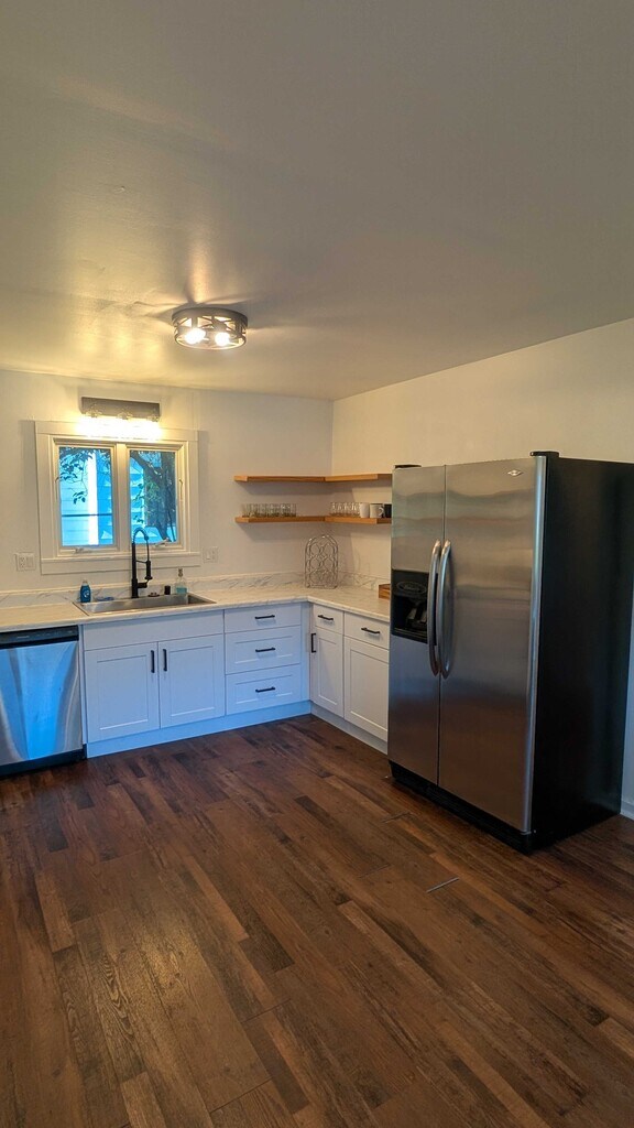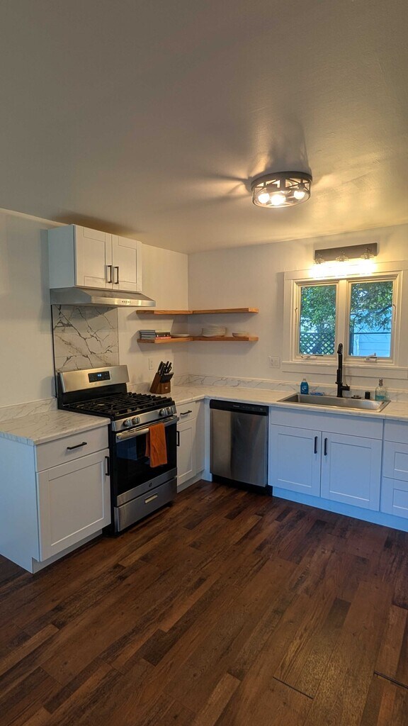 Fully Furnished and Flexible Lease Terms! This freshly remodeled home has 3 bedrooms, 2 full bathrooms, a spacious living room, and open kitchen. This craftsman home has a lovely front porch and gated front yard. Upon entering the home, you are greeted with a large living room with tall ceilings. Two bedrooms and one full bathroom live just off of the living room. As you make your way to the back of the house, there is another bedroom and full bathroom before getting to the spacious kitchen that has a lot of natural light. The kitchen and both bathrooms has been fully renovated, floors refinished, plus new paint and landscaping. Behind the kitchen is a mud room/laundry room and a door that leads to the back yard. The yard is beautifully landscaped with mature trees and has a pergola with concrete pad. A covered carport is for sole use of this property. Take advantage of this ideally located home, in the heart of Downtown Cloverdale, to enjoy delicious restaurants and bars, shops, and the local Friday night live.Electric car charger outlet installed in carport.Washer and dryer included.Well behaved pets welcome!