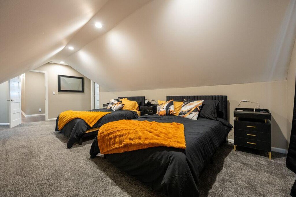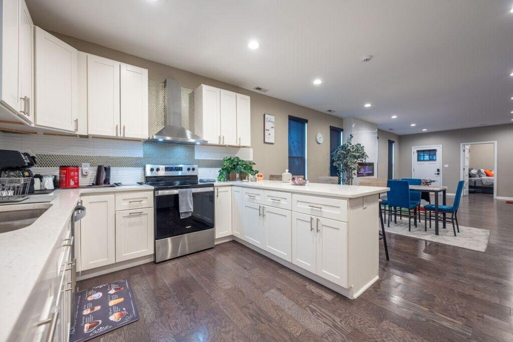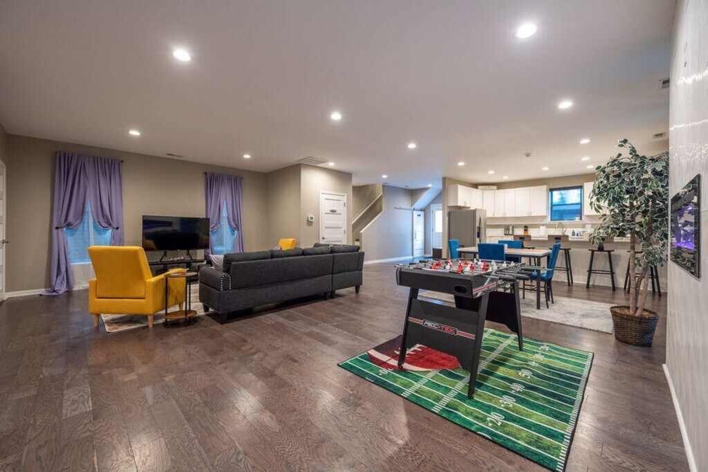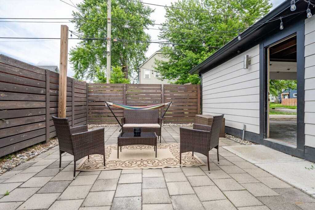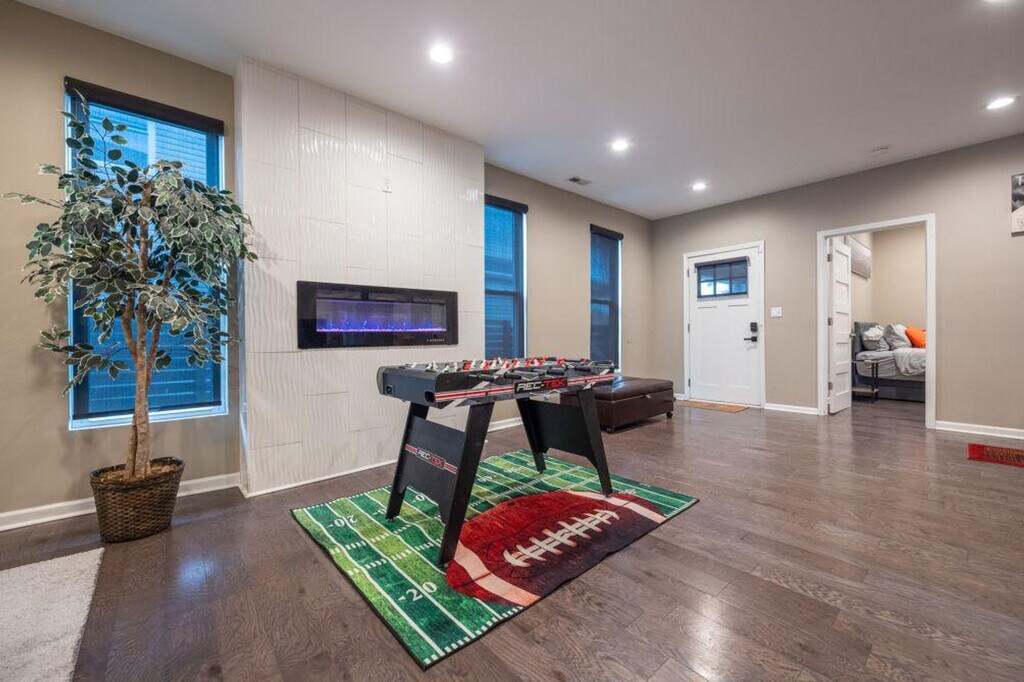 Feel at home in this stylish 3-bedroom home, your family-friendly escape in the heart of Indianapolis. The Indy Retreat blends cozy comfort, charm, and modern tech, complete with a fully stocked kitchen, offering amenities galore for a relaxing, worry-free experience. It features 2 master bedrooms for added comfort and privacy. Brew fresh coffee, or make some morning tea. Fire up the movie-theater-style popcorn machine for a cozy movie night. Soak and relax in spa-style bathrooms with a jetted tub and heated mirrors. Enjoy ambient evenings in the family room with the LED TV stand for enhanced viewing vibes. Recharge in comfort with blackout curtains, premium beds, and built-in charging stations. Stay fresh with central A/C, automatic air fresheners, and an in-unit washer and dryer. Cozy up indoors with fireplace ambiance that sets the mood just right. Travel smart with luggage racks and even a handy luggage scale in each room. Enjoy a fully fenced backyard that offers privacy and peace while you relax or entertain outdoors. Unwind the moment you walk in, the cozy mudroom bench makes storing shoes, coats, and bags a breeze. There is also a foosball table, a smart projector, and a popcorn machine. Garage parking is available for 2 cars, but oversize vehicles won't fit (approximate size: 17x17). Free public street parking is also available. Just steps from all the action in Downtown Indy, enjoy local attractions such as the Central Canal & Canal Walk, Indianapolis Cultural Trail, White River State Park, NCAA Hall of Champions, Indiana State Museum, Eiteljorg Museum of American Indians and Western Art, Indianapolis Zoo, Victory Field, TCU Amphitheater (Everwise Amphitheater), Indianapolis Artsgarden, Monument Circle (Soldiers & Sailors Monument), Slippery Noodle Inn, Lucas Oil Stadium, Gainbridge Fieldhouse, KurtVonnegut Museum and Library, and the Scottish Rite Cathedral. State Identification Card or Driver License copy will be requested upon booking. The traveler must be at least 22 years of age to make a reservation. There are 2 exterior cameras (1 front porch, 1 on exterior garage). No smoking, vaping, events, parties, or large gatherings are allowed anywhere at the property. Please be mindful of noise levels, there is one noise, smoking, vaping monitor located in the family room, there is no video or audio recording. Observe quiet hours from 11pm-7am. Damages will be billed to the guest and reported. Only registered guests are allowed. Do not use the premises for any illegal activity. There will be a $500 fee if you have accessed physical keys and remove them from the property after your reservation and keys are not returned in less than 24 hours. Work remote-ready with a dedicated desk and high-speed internet. [SI]