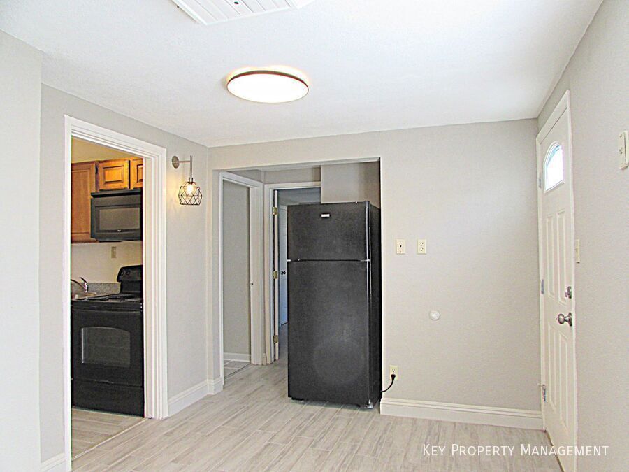 Beautifully remodeled 1-bedroom, 1-bath duplex located in the heart of downtown and move-in ready! This charming unit features tile flooring throughout, custom neutral paint, and a ceiling fan for added comfort. Enjoy a spacious yard and convenient access to a shared washer and dryer. The kitchen comes equipped with a refrigerator and range oven. Ideally situated near Fremont Street, offering quick access to dining, casinos, and vibrant entertainment!