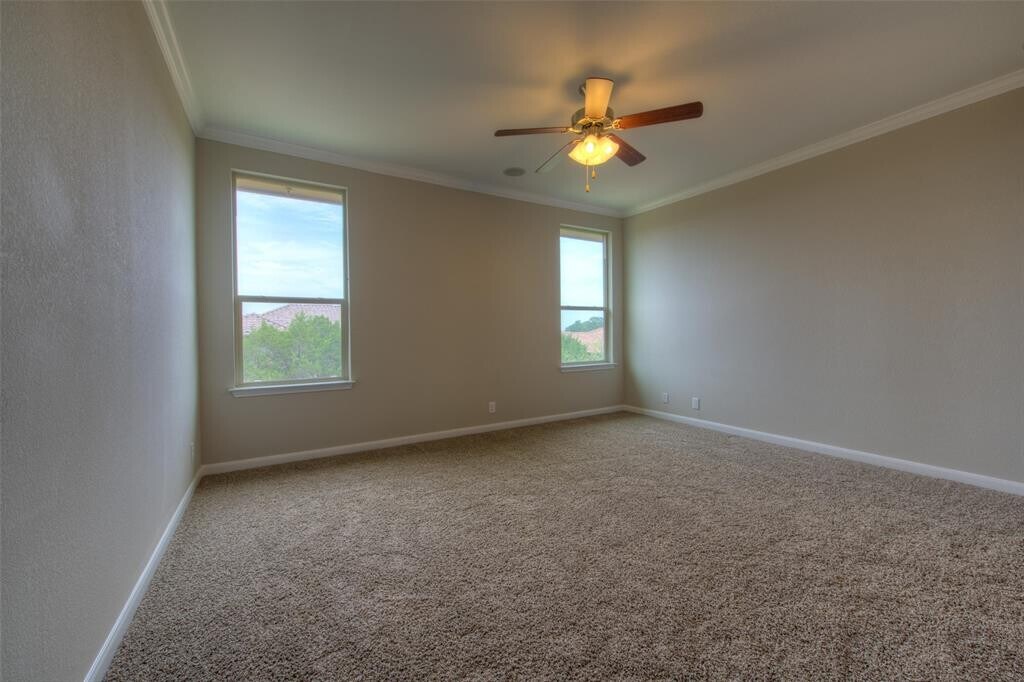 Great find in Lake Travis ISD. Beautiful and well maintained 2 story attached condo built in 2014. Stone and stucco exterior with tile roof. Custom landscaped yards with sprinkler system. 2 car garage and covered front porch entry. Wood, carpet & tile flooring. Open living, dining and kitchen with lots of natural light plus crown molding. The kitchen boasts granite counters, stainless steel appliances including gas cooktop and refrigerator as well as an eat at breakfast bar. The primary suite is at the back of condo for privacy. Primary bath with granite counters, dual vanities, walk in shower plus a big walk in closet. A half bath and a spacious laundry room round out the first floor. Large game room with skylight, 2 bedrooms plus a hall bath and 2nd primary suite upstairs. Covered back patio, fenced back yard with mature trees. Close to everything in Lakeway as well as Lake Travis. MLS ID 1777798