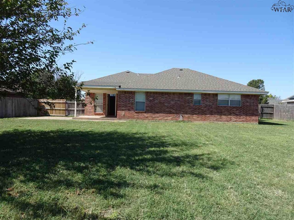 Beautiful 3 bedroom 2 bath home in Burkburnett. All bedrooms have large closets. Fireplace in living room, nice hallway linen Closet and two car garage. Large backyard with storage building and privacy fence.