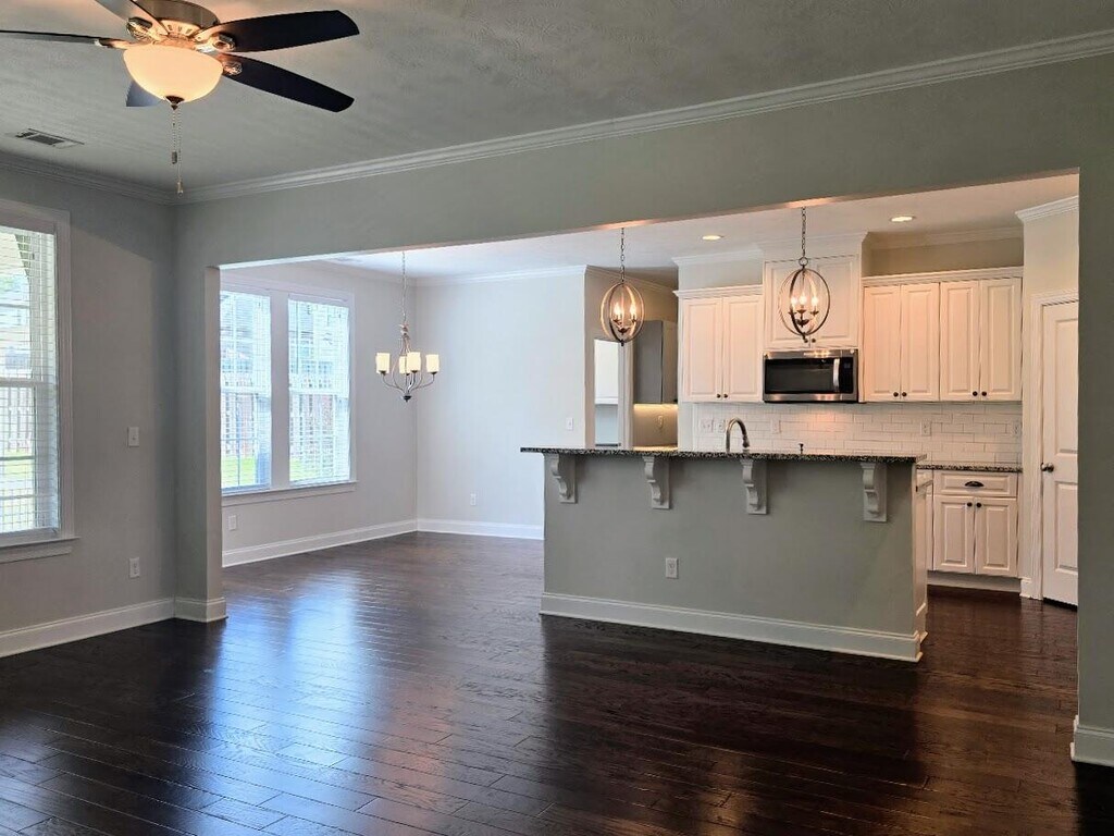 Stunning 5 bedroom home in Canterbury Farms available for immediate occupancy! Covered front porch opens to foyer with wood floors and deep coat closet. Flex room to the right can be used for formal dining,formal living,den,office or play area and has coffered ceilings and decorative lighting. Foyer opens to open concept living room and kitchen area. Living room has ceiling fan,electric fireplace with recessed light over mantel,lots of natural light from 3 windows. Kitchen area has island with raised breakfast bar with pendant lighting,granite counters,stainless appliances,subway tile backsplash,walk-in pantry,double wall oven and cooktop. Adjacent breakfast area has decorative lighting and access to backyard. Beyond the kitchen is a hallway with butlers pantry cabinetry with undercabinet lighting,5th bedroom with ceiling fan,walk-in closet and access to full bathroom with tub/shower combo. Separate workspace room with counter and cabinetry can be used as an extra office space or would make an excellent craft room. Hallway also leads to 2 car garage with front and rear sprinklers and coat closet. Upstairs you will find the laundry room with upper cupboard space and washer/dryer hookups. Hallway bath with dual sink vanity and water closet with tub/shower combo. Spacious 2nd,3rd and 4th bedrooms with ceiling fans and double bifold door closets. Hallway has a double bifold door storage closet. Primary suite with trey ceilings and ceiling fan in main area plus sitting area. En-suite bathroom has dual sink vanity,granite counters,large walk in shower,separate soaker tub,water closet,linen closet and access to very large walk in closet. Rear covered screened patio with ceiling fan,additional uncovered patio space,spacious fenced in yard. No pets. Located close to Ft. Eisenhower,schools,and shopping. Neighborhood amenities include nature trails,bike path,park,resort-style pool and pavilion! #goodtoask
