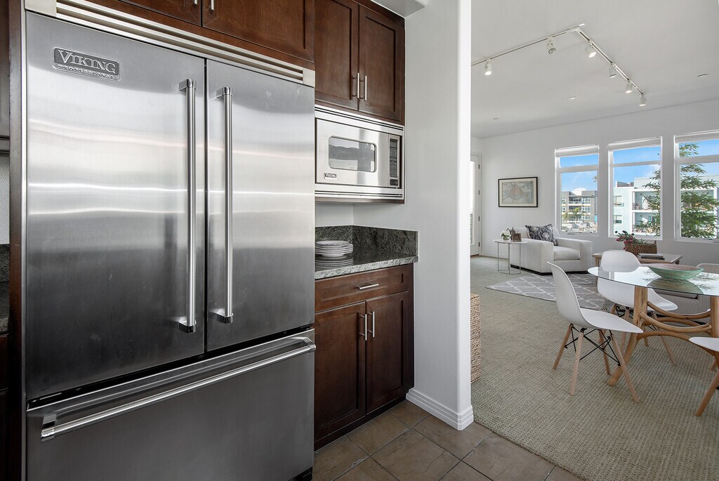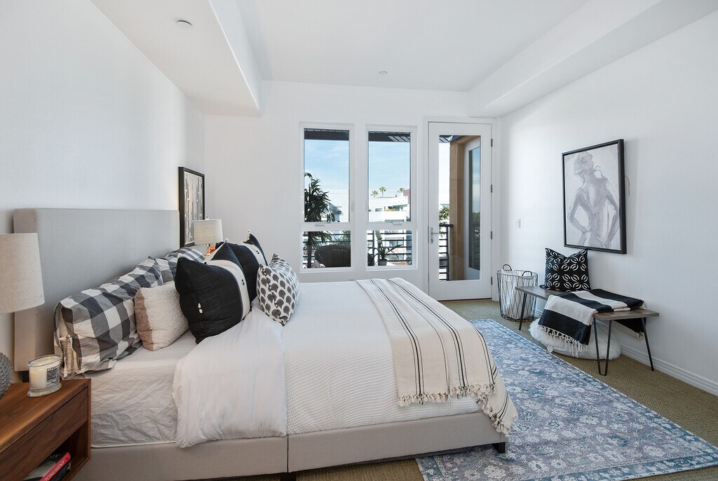Sunlight fills this top-floor corner unit at the sought-after Indigo complex in the Marina Arts District. The open floor plan is light and airy, with high ceilings and walls of windows that frame the views. The kitchen features granite countertops, Viking stainless steel appliances, and rich wood cabinetry. The spacious primary suite offers two closets and a luxurious ensuite bathroom with a soaking tub, separate shower, and dual vanity. Both the living room and bedroom open to a private balcony, perfect for enjoying sunset views. Additional highlights include in-unit laundry, a powder room, and side-by-side parking. Indigo offers a full suite of amenities, including a gym, spa with hot tub and sauna, and landscaped courtyards with BBQs and a fire pit. Located in the heart of the Marina, you're just minutes from Silicon Beach, Abbot Kinney, great restaurants, shops, movie theaters, and the beach. Showings begin this weekend, October 4th & 5th. Rental Terms: Annual: $3,800 Per Month