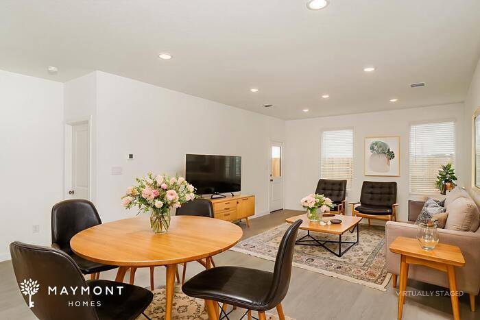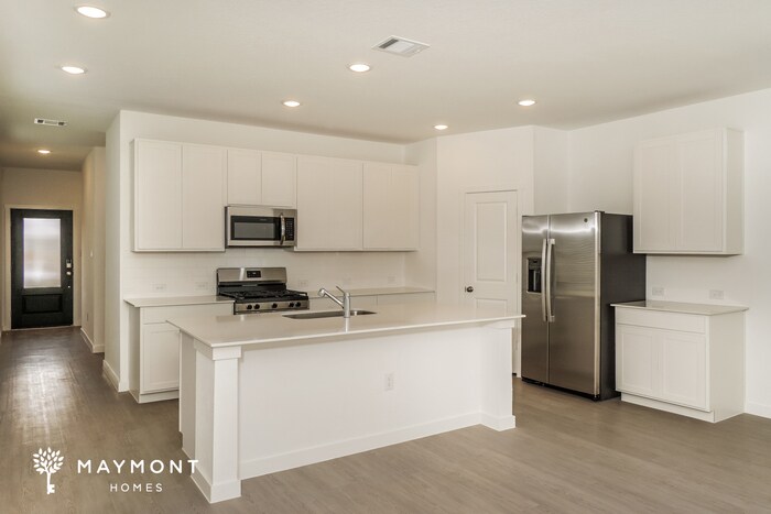 MOVE-IN READY Monthly Recurring Fees: $35.00 - Amenity $25.00 - Smart Home $43.99 - Internet This four-bedroom, three-bath brick-facing home in New Braunfels offers a thoughtfully arranged two-story layout within the Kyndwood community. A two-car garage provides practical parking and storage, while the exterior presents a clean, classic design. The main level centers around an open living space finished with durable LVP flooring that continues into the kitchen, creating a seamless transition between gathering and dining areas. The kitchen features a large island with an integrated sink, stainless steel appliances, and ample upper and lower cabinetry, supporting both function and organization. Bedrooms are finished with carpet and neutral tones, offering flexible and comfortable spaces. The primary suite includes a walk-in closet and a private bathroom with a double-sink vanity and spacious standing shower. Two additional full bathrooms are positioned throughout the home to support the layout efficiently. Upstairs, a loft provides added versatility for a secondary living area, workspace, or recreation zone. The fenced backyard offers defined outdoor space for relaxing or spending time at home. Residents of Kyndwood enjoy access to community amenities including a swimming pool, fitness center, pickleball courts, picnic areas, playground, and gathering spaces. The location also provides convenient access to shopping, dining, entertainment, Landa Park, and the Gruene Historic District. With its functional design, new construction appeal, and access to community features, this home presents a comfortable and connected living opportunity in New Braunfels. *Maymont Homes provides residents with convenient solutions, including simplified utility billing and flexible rent payment options. Contact us for more details. This information is deemed reliable, but not guaranteed. All measurements are approximate. Actual product and home specifications may vary in dimension or detail. Images are for representational purposes only. Some programs and services may not be available in all market areas. Prices and availability are subject to change without notice. Advertised rent prices do not include the required application fee, the partially refundable reservation fee (due upon application approval), or the mandatory monthly utility management fee (in select market areas.) Residents must maintain renters insurance as specified in their lease. If third-party renters insurance is not provided, residents will be automatically enrolled in our Master Insurance Policy for a fee. Select homes may be located in communities that require a monthly fee for community-specific amenities or services. For complete details, please contact a company leasing representative. Equal Housing Opportunity. This property is subject to homeowners' association (HOA) governance; restrictions and covenants may apply. This property allows self guided viewing without an appointment. Contact for details.