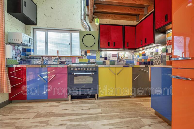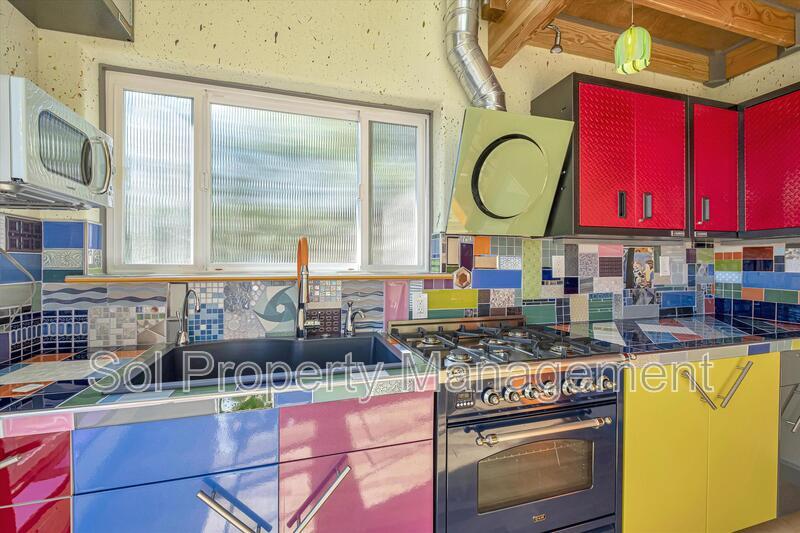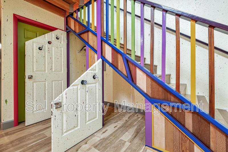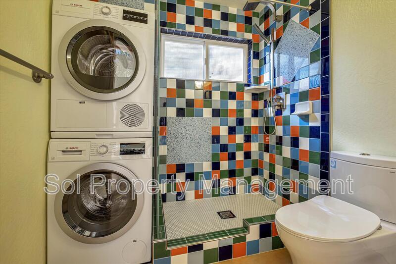 Guaranteed to be the most unique living space you've ever seen. The character and attention to detail put in the design of this studio is absolutely stunning. This spacious fully detached ADU is set away from the main house, separate gated entrance, very private & serene, and even sound proofed. Naturally sunny with a wall of windows overlooking the greenbelt, overhead LED plus soft track lighting too. Everything is like new, custom paint, designer appliances, exotic woodwork, hand selected and placed tiles. Features include a fully equipped kitchen, full bathroom with shower, washer & dryer, a separate sleeping loft, and large deck. Window coverings provided including skylight blackout shades. All utilities (water, sewer, gas & electric) included. Option for EV charging for an additional fee. 1 year lease required. 1 small pet may be considered. Please do not disturb occupants and do not visit the property without an appointment.