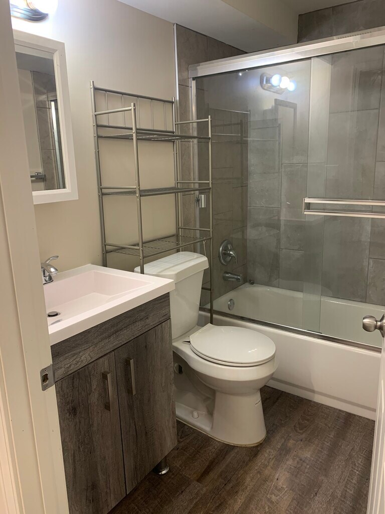 Newly remodeled garden level 1 bedroom 1 bath apartment in quiet park-like setting. Beautiful kitchen offers granite counters and stainless steel appliances. Vinyl plank flooring in kitchen and bath and neutral carpet in living room and bedroom. Large walk-in pantry and laundry room for extra storage.