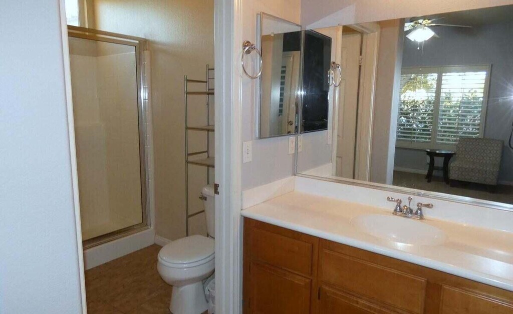 This is a beautiful Tuscan style house with tile roof,high ceilings and open great room floor plan. Plantation shutters with lots of light pouring in. The master suite is enormous with plantation shutters. The master bath has double sink vanity,double door walk-in closet,tub and separate clear glass shower. The kitchen is very spacious,with an island and breakfast bar as well as casual eating,lots of cabinets and a cozy breakfast overlooking the front patio. Also,fresh paint and brand new vinyl flooring. The house includes a fantastic one bedroom,one bath casita.. The casita has its own entry off entrance patio and is perfect for guests,as an office or a great 4th bedroom. There are ceiling fans in the great room and the bedrooms. The large backyard has pool,spill-over spa and grassy area for outdoor fun. The community includes a nice playground area for kids. The tenant must provide the proof of income and have good credit score. The tenant pay for the utilities. . Also,tenant to purchase renter's insurance .