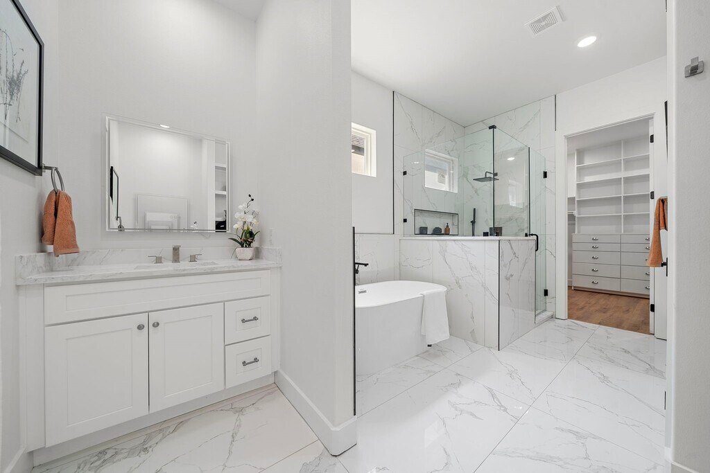 Washer,Dryer,Fridge included. New-never lived in. Single owner. This beautifully designed new construction home in Independence Heights sits on a spacious 3,000 sq ft lot and features 10-foot ceilings on both floors. The open-concept kitchen showcases a massive 10-foot waterfall quartz island,ceiling-height cabinetry,and premium Italian Forno appliances—including a 36-inch,6-burner range and refrigerator. A hidden storage space behind a bookshelf and a convenient powder room near the entry add thoughtful touches. Luxury vinyl plank flooring,a high-efficiency Trane HVAC system,and porcelain-tiled showers up to the ceiling highlight the home’s quality finishes. The primary suite offers a spa-like bath with a soaking tub,separate shower,and a huge custom walk-in closet. Outside,enjoy a fenced grassy yard,covered patio with gas and water hookups,and a tall privacy fence—ideal for relaxing or entertaining. MLS# 33384240