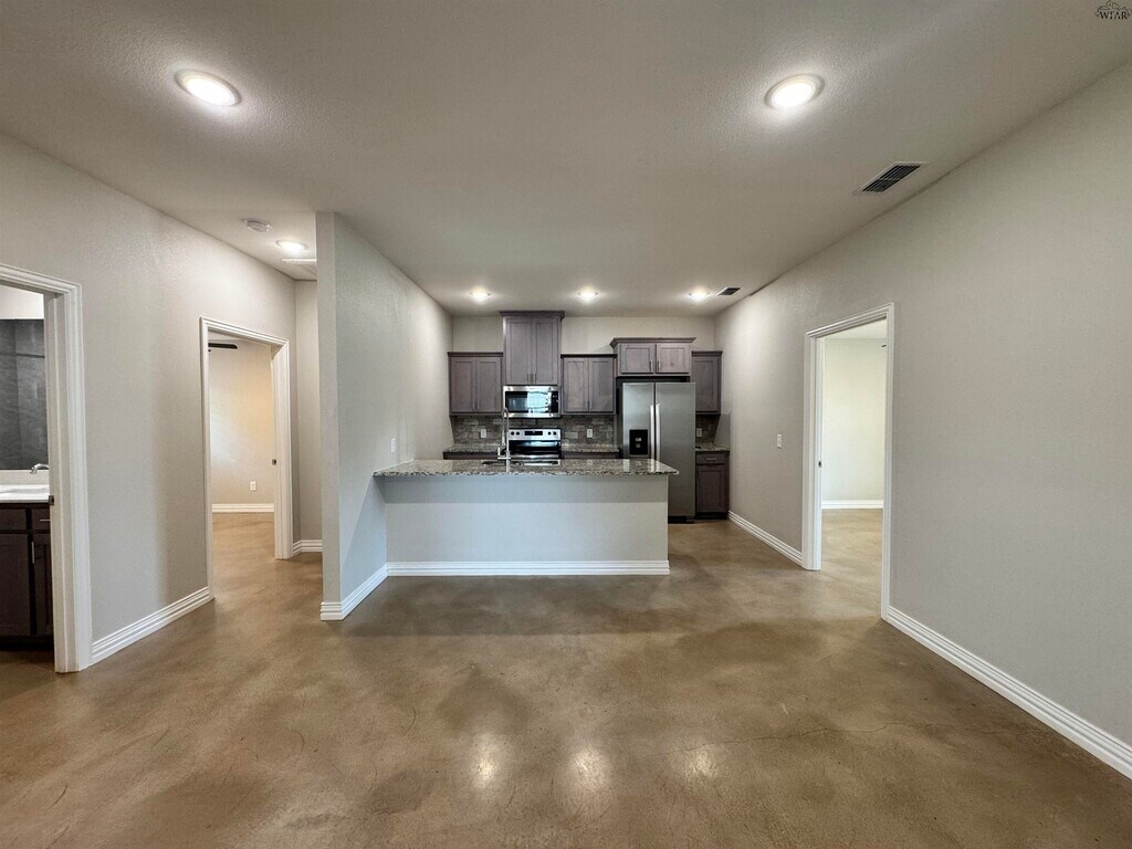 Immaculate, brick duplex unit immediately available in the highly-sought-after Holliday ISD. Satin-finished concrete floors throughout, fresh paint, and a clean 2-car garage await you. The kitchen features stainless appliances and granite countertops. The master bedroom showcases an on-suite bathroom with double vanity, and a massive walk-in closet. Security deposit $1500. Pets welcome with approval and non-refundable fee per pet. Application for anyone over 18.