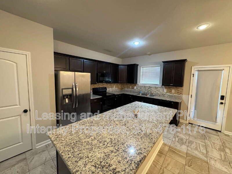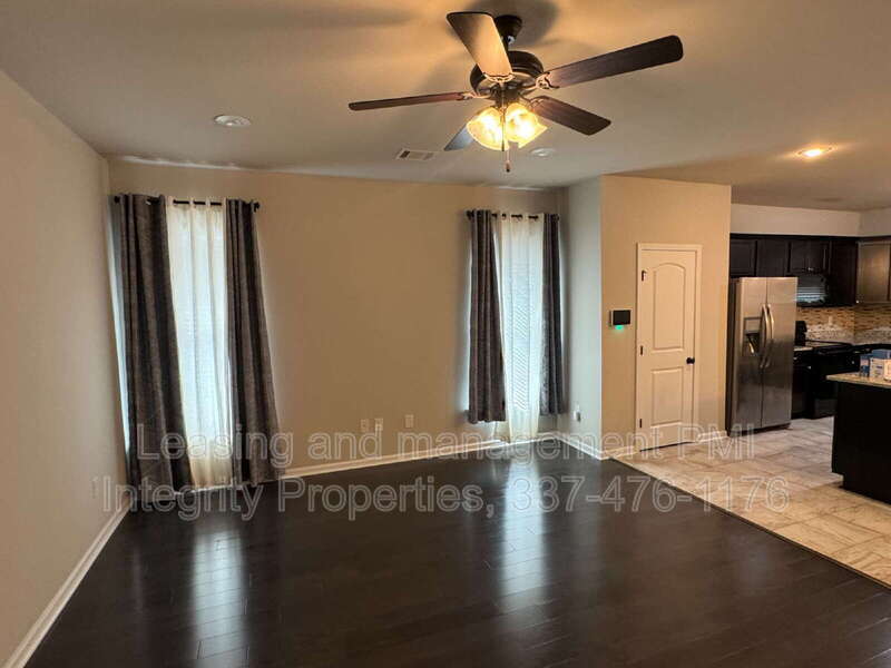 This beautiful 4-bedroom, 2.5-bath home is nestled on the outskirts of the city, offering the perfect balance between peaceful country living and convenient access to everything you need. Upgrades include additional recessed lighting and more. Special features include wood flooring in the living room, stunning birch cabinets, ceramic tile flooring in wet areas, and 3 cm slab granite countertops in the kitchen and bathrooms. The home also features recessed kitchen lighting, a garden tub and separate shower in the primary bathroom, oil-rubbed bronze fixtures, and Frigidaire appliances including a micro-hood, range/oven, washer/dryer and dishwasher. Additional highlights include architectural shingles, radiant barrier decking in the attic, a post-tension slab, a covered patio, and a fenced backyard. Tenant is responsible for fo lawn care, utilities and pest control. Pets allowed