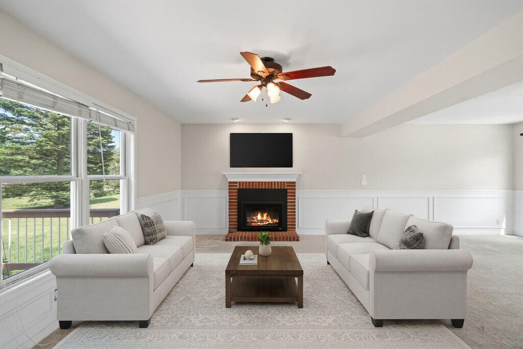 Donna Brongiel At Home Team*Discover this beautifully updated home, conveniently located just a mile from the tranquil Geneva Lake beach in the desirable Lakewood Trails community. At the heart of the home lies an exquisite kitchen that features quartz countertops, custom tile backsplash & center island topped with butcher block. French doors lead into a versatile room, perfect for a dining room or office/den. The primary suite includes a WIC and ensuite bath complete w/ separate tub, dual sinks & walk-in shower, plus an upstairs laundry for added convenience. Downstairs, a finished rec-room with egress windows offering potential for additional bedrooms. For outdoor enjoyment, a private yard with beautiful landscapes & mature perennials. Also close to top-rated schools, this home truly has it all! Virtual staging.