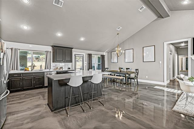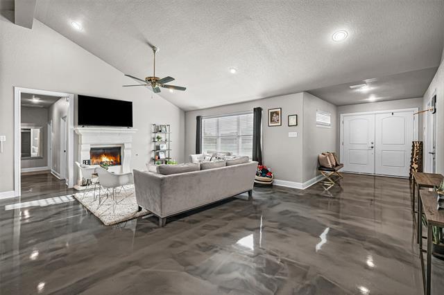 Modern country living meets convenience in this stunning open-concept 4-bedroom, 3-bath home on one fully fenced acre in Aledo ISD! Built in 2020, this home offers a modern black, white, and gray design with clean lines, quality finishes, and a spacious, airy layout. Inside, you’ll find stained concrete floors throughout the main living areas and soft carpet in the bedrooms. The bright, open floor plan connects the kitchen, dining, and living spaces seamlessly—perfect for entertaining or family time. The kitchen features a gas stove, while the living room showcases a gas-starter wood-burning fireplace for cozy evenings. The primary suite offers a private en-suite bathroom, and a second bedroom also includes its own full bath, making it ideal for guests or multi-generational living .Step outside to a huge covered back patio, extra parking area, and a fully fenced yard with a French drain and water softener system on the home. There’s also a sprinkler system on the whole yard.This property has been immaculately maintained—no indoor pets are allowed (outdoor pets are welcome).Located just minutes from I-20, shopping, dining, and schools, this home combines modern style, open-concept living, and country space—all in a highly desirable area.