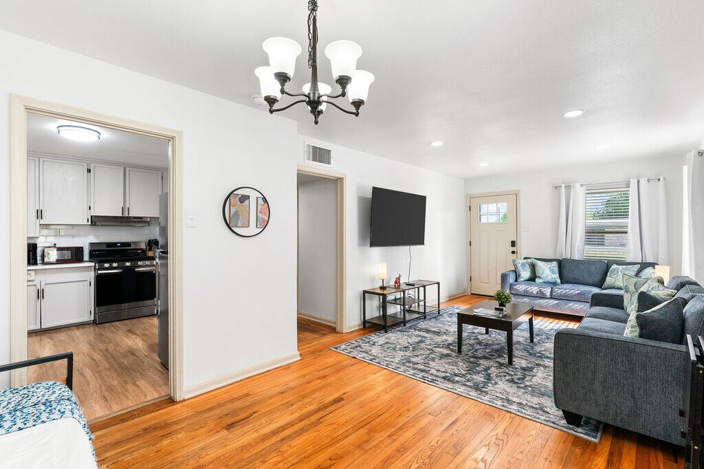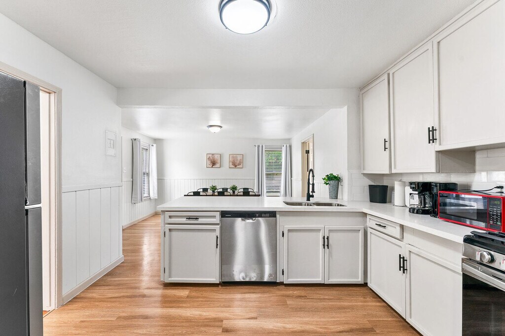 Centrally located, this charming 3-bedroom, 1.5-bathroom home near downtown Corpus Christi offers easy access to Shoreline Drive, hospitals, refineries, and local businesses. Perfect for work trips or family stays, the home comfortably accommodates up to 7 guests with its cozy living spaces and full kitchen. Enjoy the convenience of nearby dining, shopping, and attractions, ensuring you feel at home during your stay. Welcome to your cozy and budget-friendly getaway in the heart of Corpus Christi! This charming home offers comfortable accommodations for up to 7 guests, making it perfect for work crews, family trips, or small group getaways. The living room features comfortable seating with a casual vibe, a twin daybed with a twin trundle bed, and a smart TV for streaming. The fully stocked kitchen includes a full-size fridge, oven, microwave, coffee maker, and a breakfast nook perfect for shared meals. The bedrooms offer a queen bed in two rooms and a twin daybed in the third, with additional sleeping arrangements in the living room. For stays over 7 nights, a mid-stay cleaning is required to keep the space fresh. Bringing pets is welcome with a $120 fee per pet per stay. A maximum of either one large animal or two small animals is allowed, and all pets must be kenneled and house trained. Pet waste must be properly disposed of, and pets must be kept off furniture and bedding, or a minimum cleaning fee of $100 will be assessed. Emotional support animals are not exempt from this pet policy and fees. This charming residential neighborhood in Corpus Christi offers a peaceful and family-friendly atmosphere, perfect for travelers seeking a quiet retreat. With convenient access to local parks, grocery stores, and dining options, guests can enjoy a comfortable stay while being just a short drive from the city’s vibrant beachfront attractions and cultural landmarks. The area combines suburban tranquility with easy connectivity to downtown and the Gulf Coast’s beautiful shores. The home is situated in a quiet neighborhood, providing a peaceful environment for your stay. Check-in and check-out times are flexible to accommodate your schedule. All homes are equipped with smart TVs, and all streaming services require your own login credentials. A starter pack of essentials is provided, including trash bags, dishwashing pods, toilet paper, shampoo, conditioner, body wash, coffee, creamer, and sugar. Additional supplies beyond the starter pack are the guest’s responsibility unless your stay is 14 days or longer, in which case a mid-stay replenishment may be offered. [SI]