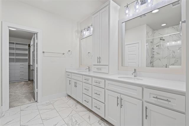 Located in the Linwood Addition of Fort Worth, 406 Wimberly St is a two-story townhouse built in 2018. The ground floor features a spacious kitchen, along with welcoming living and dining areas, and a guest powder room. Upstairs, there are three bedrooms and two full bathrooms. The primary bedroom includes an ensuite bathroom with dual sinks and a spacious walk-in closet.