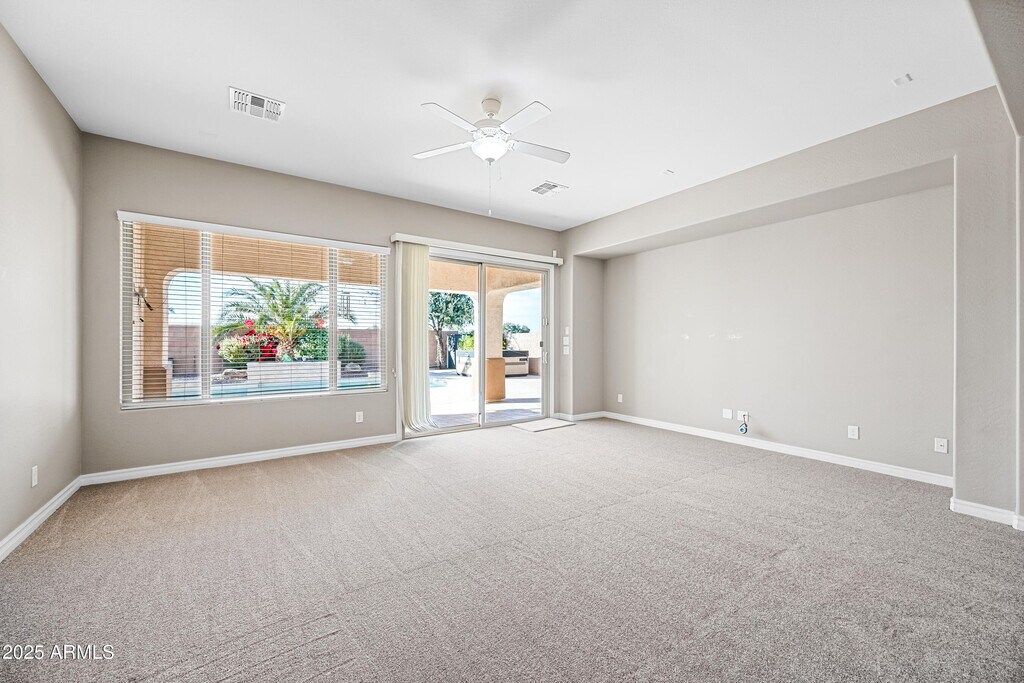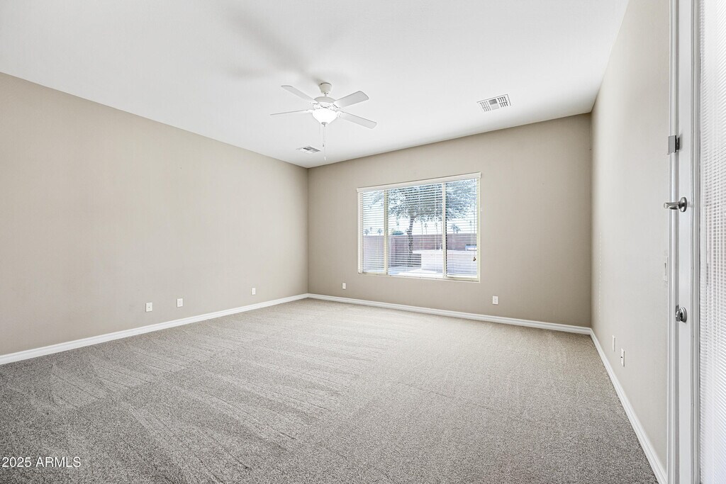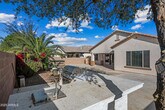 Gorgeous Fulton Ranch home with 5 bedrooms and 3 full baths,including a private guest suite,ideally located across from a huge park with sport court. Formal living and dining rooms welcome you inside. The gourmet kitchen features stainless steel appliances,36'' gas cooktop,42'' cabinets,granite countertops,oversized island with breakfast bar,walk-in pantry,and recessed lighting. Desirable split floor plan offers privacy for the guest suite,primary suite,and secondary bedrooms. Spacious laundry room includes cabinets and sink. Open kitchen and family room lead to a backyard with travertine paver patio,play pool,and water feature. Fulton Ranch offers lakes,parks,walking paths,grassy play areas,and sport courts just steps away.