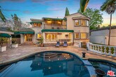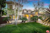 Behind private gates in one of Sherman Oaks' most coveted South of Ventura enclaves, this exceptional Mediterranean estate offers 4 bedrooms and 4.5 bathrooms across approximately 3,687 sq ft of living space on a 7,403 sq ft lot, blending timeless architecture with refined luxury. A dramatic two-story living room with exposed wood beams, skylights, and a statement fireplace creates an impressive sense of scale and natural light, while arched passageways, custom millwork, and rich finishes add warmth and character throughout. Designed for both elegant entertaining and everyday comfort, the formal dining room and expansive chef's kitchen showcase granite countertops, custom cabinetry, premium stainless appliances, a Viking six-burner range with double ovens, and a generous center island, all flowing seamlessly into the breakfast area and inviting family room with fireplace, built-in bar, and wine refrigeration. Two ensuite bedrooms are conveniently located on the main level, including a private guest suite with French doors opening to the grounds. Upstairs, the luxurious primary suite offers soaring ceilings, a romantic balcony, spa-inspired bath with soaking tub and oversized shower, dual vanities, a dressing area, and a spacious walk-in closet. The lush backyard evokes a private resort with tropical landscaping, a sparkling pool and spa, multiple covered entertaining areas, a fully equipped outdoor kitchen with built-in BBQ, bar, and manicured lawn creating the ultimate indoor-outdoor lifestyle in a secure and beautifully designed South of Ventura residence. MLS# 26673755