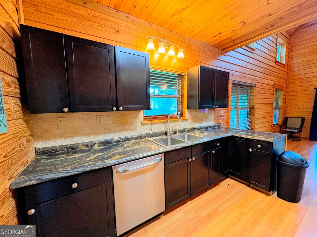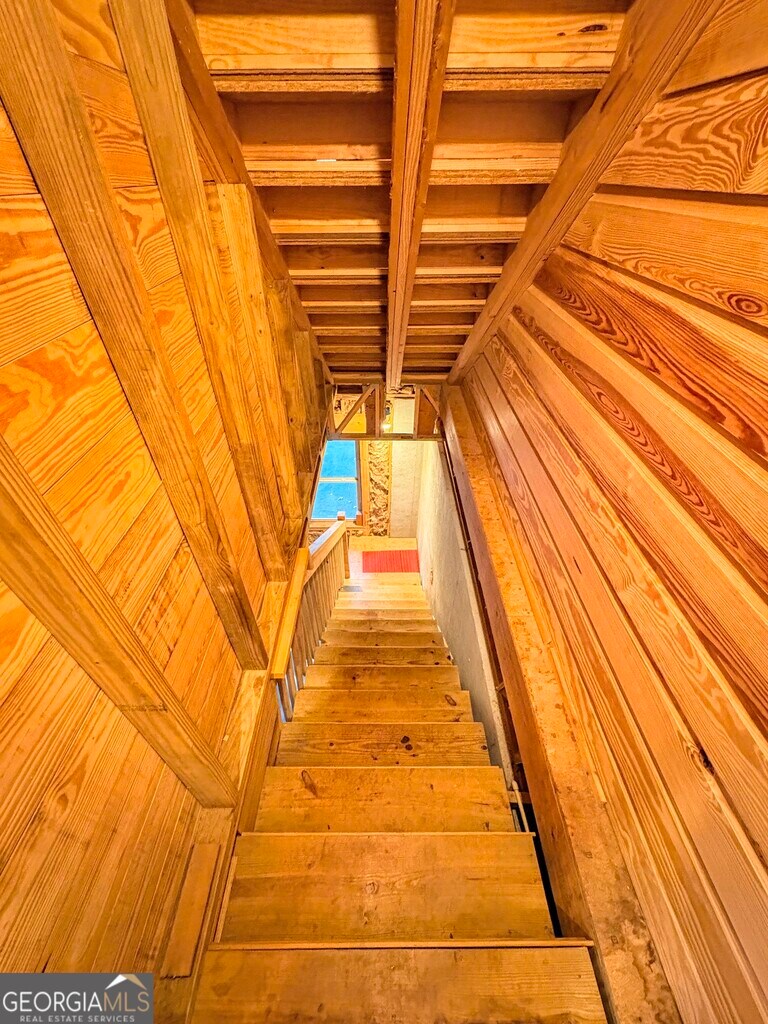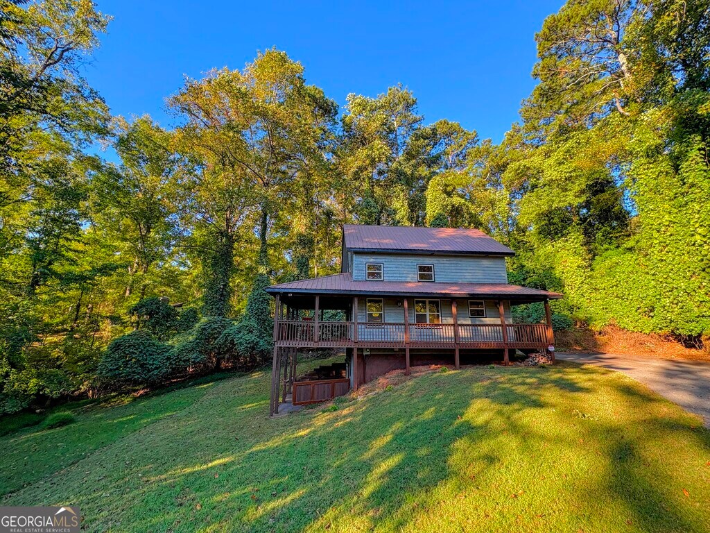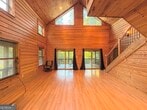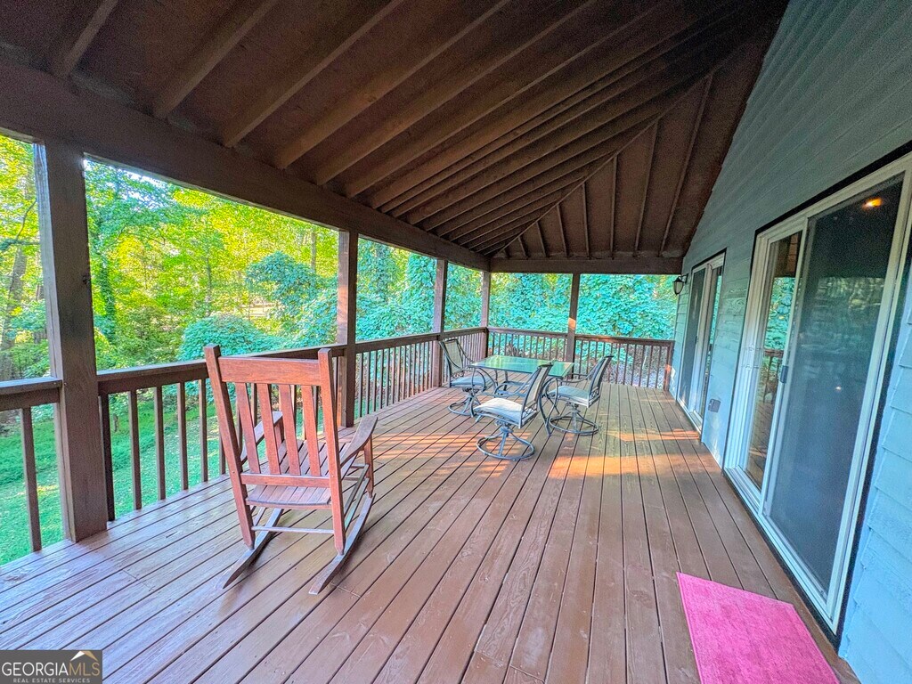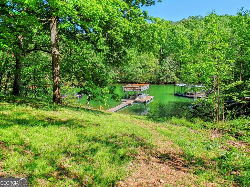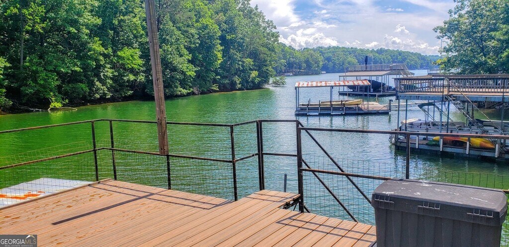 Lake Lanier living in this resort style cabin! Easy, easy walk to the single slip Trex party dock in deep water available for tie-up only storage. Gleaming all wood cabin with soaring ceilings and open concept floor plan. Windows everywhere, high and low, provide wonderful natural light and make the most of the wooded lot views. Spacious loft bedroom looks out into the treetops. Enjoy a morning coffee, an afternoon nap or an evening refreshment on the covered back deck with wrap around porch. Full unfinished basement yields plenty of storage. Private, and yet .... just minutes from shopping and life's necessities! Call for a private showing.