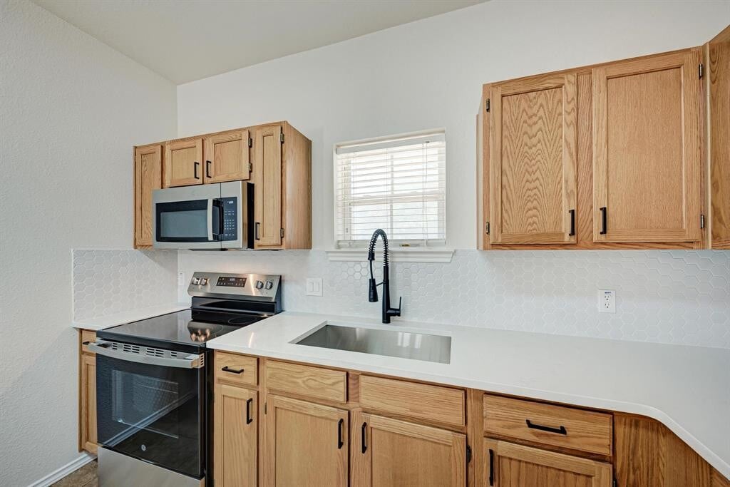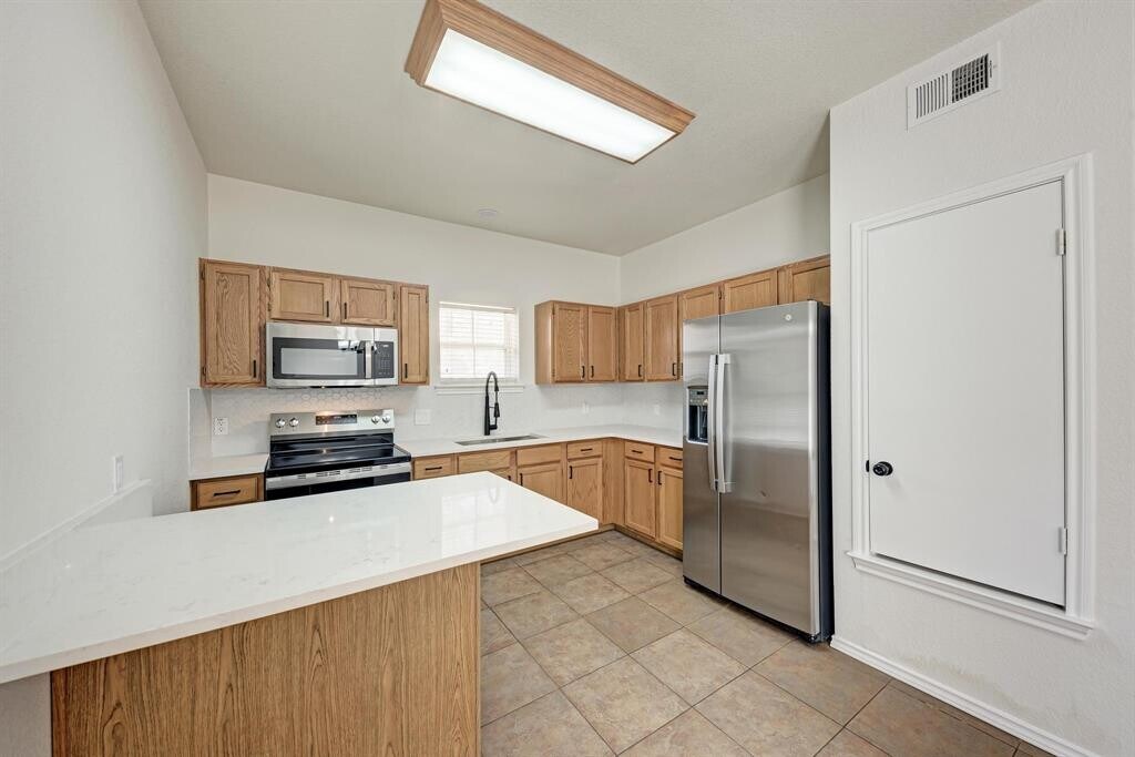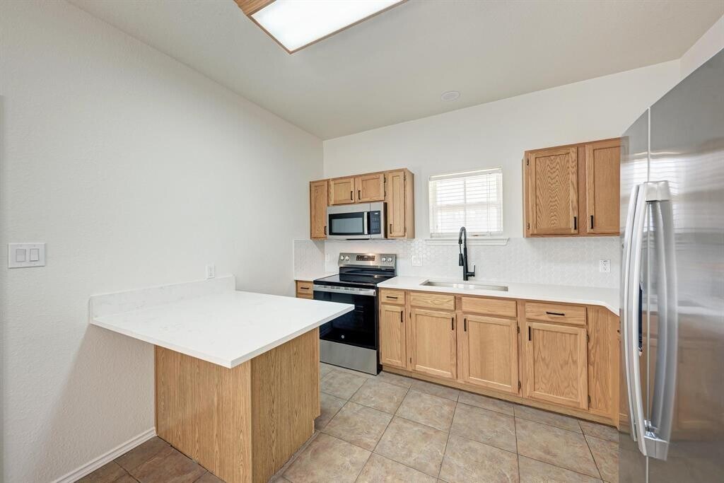 Beautifully remodeled home in a quiet Leander neighborhood. This home features brand-new flooring in all bedrooms, fresh exterior paint and interior (including the garage), new door knobs and updated lighting. The kitchen has been fully refreshed with new quartz countertops, modern backsplash, new cabinet hardware, and new stainless steel appliances. Bathroom includes a modern double vanity, new faucets and stylish finishes. Enjoy the open floor plan, new ceiling fans, and a bright, inviting atmosphere. Step outside to a spacious private backyard-perfect for relaxing, entertaining and pets. the driveway has been pressure washed for great curb appeal. Conveniently located near shopping, schools, and major highways. Move-in-ready and shows like a new home!
