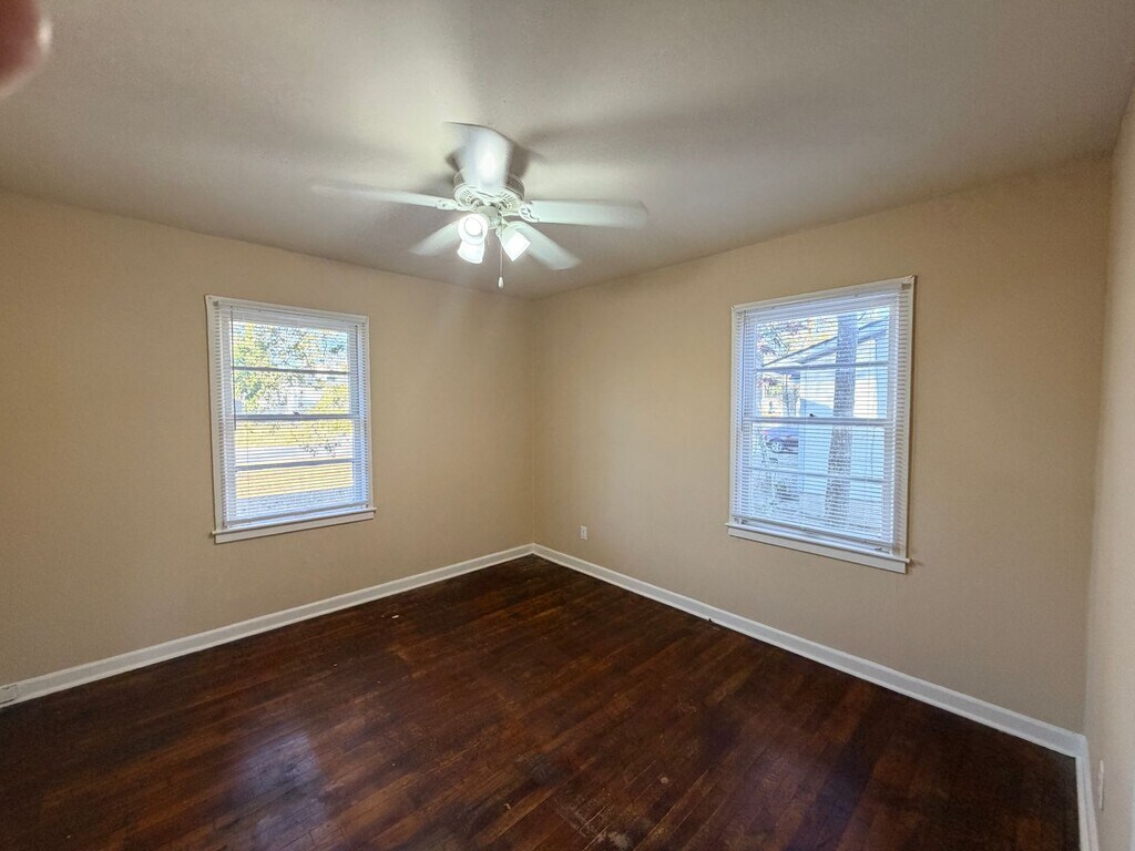 Studio home in Valdosta, Georgia, with classic hardwood floors and a cozy fireplace. Its best feature is close to key amenities: 0.6 miles to South Georgia Medical Center and a 4-minute drive to Valdosta State University.