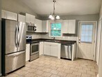 Super cute and updated 2 bedroom, 2 bath duplex just outside the city limits. Featuring a fully renovated kitchen with all upgraded stainless steel appliances and durable tile floors. Laundry closet located off kitchen with washer and dryer included in "as is" condition. Living room has vaulted ceilings with a wood burning fireplace. 2 nice sized bedrooms, 1 has a private bathroom. You will love the back deck, storage room and fenced in backyard. Pets are negotiable on a case by case basis. 6 and 12 month leases will be considered. Schedule your showing today!