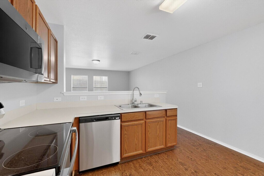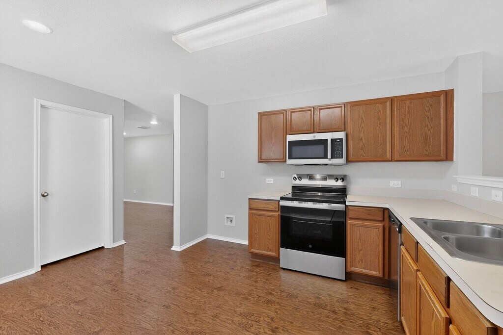 Step into this beautifully refreshed 4 bedroom, 2 bath home featuring wood laminate flooring and fresh interior paint throughout. The spacious living room provides an open, welcoming place to relax or entertain. The private primary suite offers a large walk-in closet and comfortable separation from the secondary bedrooms, which are also generously sized. The eat-in kitchen comes fully equipped with black - stainless steel appliances, including dishwasher, built-in microwave, oven, and pantry storage, making daily meals and gatherings easy and convenient. Enjoy resort-style living in the sought-after Grand Heritage community with access to top-notch amenities including a pool, parks, walking trails, playgrounds, and a full amenity center. This home includes high-speed fiber internet for reliable work, streaming, and everyday connectivity. Residents are automatically enrolled in the available fiber service and may choose their preferred speed and package at a discounted rate. Your selected plan is billed as a separate line item for simple, stress-free setup. Pets welcome with approval and applicable fees. Deposit alternative available through Obligo. Qualified renters can move in with a fraction of the traditional deposit cost by using Obligo’s flexible deposit replacement program. Schedule your tour today. Text or call Email