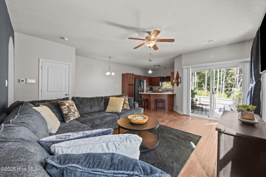 Welcome to 407 Frisco Way -- a charming retreat tucked into a quiet Holly Ridge cul-de-sac, where coastal ease and everyday convenience come together in perfect balance. Step inside, and the open floor plan instantly draws you in. Light pours through the living and dining areas, flowing seamlessly into the open kitchen where you'll find stainless steel appliances, a peninsula island, and plenty of space for casual meals or entertaining friends. Just beyond the dining room, a private patio is ready for summer cookouts, sunset cocktails, or peaceful evenings surrounded by nature. Upstairs, the primary suite features an extra large walk-in closet and an ensuite with dual vanities and a five-foot walk-in shower featuring double shower heads. Two additional bedrooms provide space for guests, family, or even a home office. And with the laundry room right upstairs, daily routines are a breeze. This home was designed with comfort and convenience in mind -- from smart home security and low-maintenance flooring to plush carpeting in the right places and a one car garage with epoxy flooring. The fenced backyard, lined with trees, creates the perfect canvas for play, gardening, or quiet reflection. Best of all, 407 Frisco Way is just minutes from Camp Lejeune, MCAS New River, shopping, dining, and Surf City and North Topsail beaches. It's turnkey, thoughtfully designed, and ready for you to move right in.