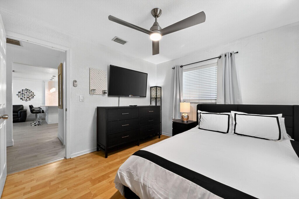 Welcome to this beautifully renovated and fully furnished 3-bedroom, 2-bathroom home for lease, nestled on a quiet cul-de-sac in Jupiter. Recently updated with a brand-new roof and fresh exterior paint (2024), this residence is move-in ready and designed for comfort and style. Inside, you'll find a bright and welcoming layout with hurricane-impact windows, elegant finishes, and thoughtful upgrades. The master bathroom features a travertine shower, while the second bathroom is accented with slate tile. A lovely Florida room provides the perfect spot to relax or entertain year-round. Outdoors, the lush backyard is a private retreat with a sparkling pool and ample space for entertaining under the Florida sun. The extended driveway offers plenty of parking, and