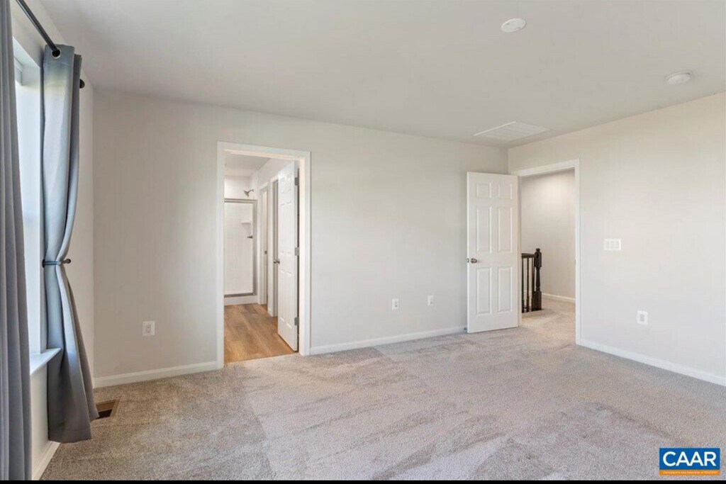This spacious 4-bedroom, 3-full-bath home offers an open-concept design with exceptional natural light and living space. Expansive sliding doors open to a brand-new deck to the newly fenced-in yard, flooding the kitchen with sunshine. The kitchen features granite countertops, white cabinetry, and a large island that flows seamlessly into the oversized living room perfect for entertaining. A main-level bedroom with a closet can serve as a home office, complemented by a formal dining room and full bath. Upstairs, the primary suite boasts a luxurious bathroom, while a family room, two generously sized bedrooms, another full bath, and a convenient laundry room complete the second floor. The finished basement with LTV flooring and already plumbed for a bath, offers the potential for an additional 900 sq. ft. of living space ideal for a recreation room, home gym, or guest suite. A state-of-the-art security system and irrigation system available. Dogs considered on case-by-case basis. No smoking allowed.