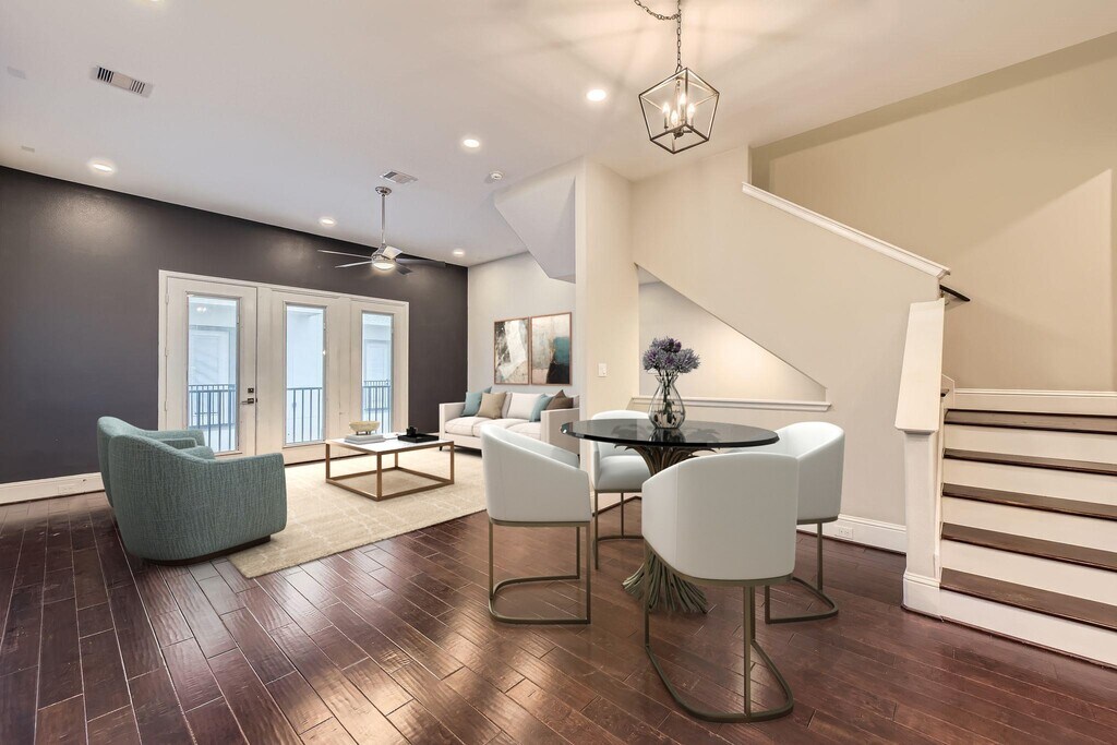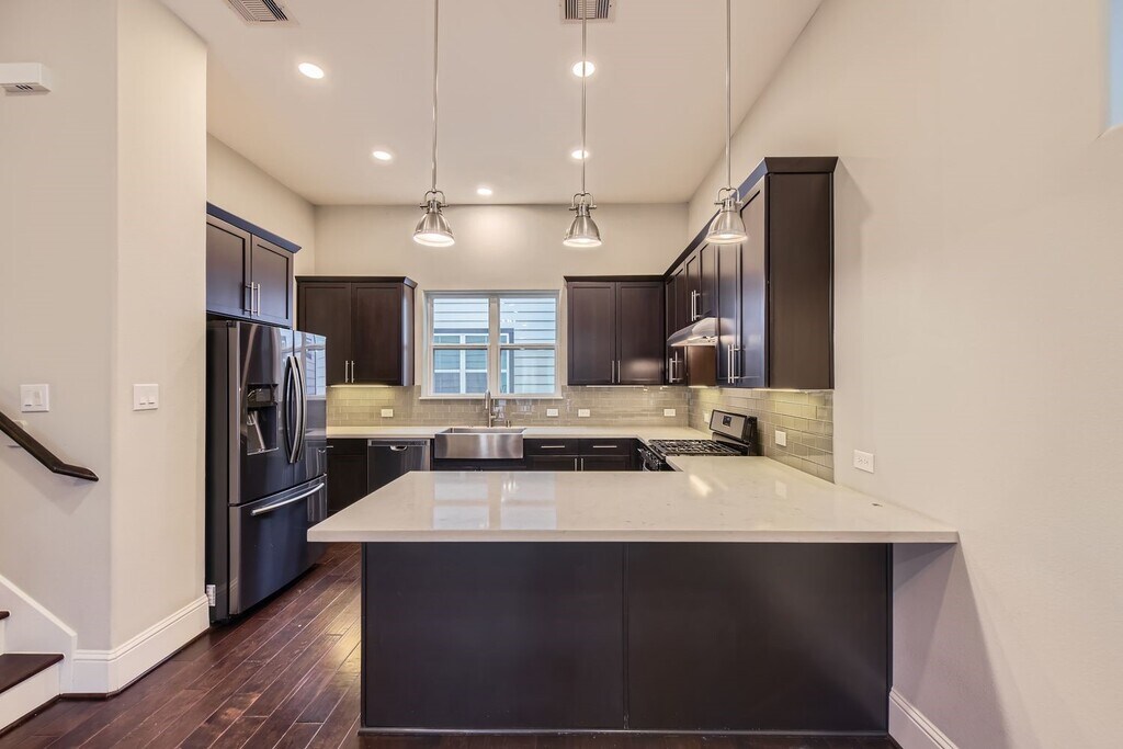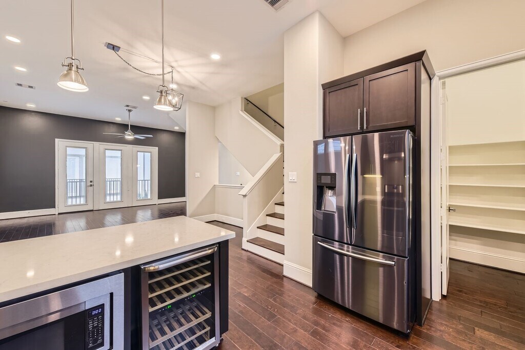 This beautiful home is located in a gated community in EaDo,one Houston's most unique neighborhoods. Live in style with luxurious finishes throughout. Hardwood floors,stainless steel appliances,and granite counter tops. Wine chiller and beautiful backsplash in the kitchen. Open concept floorplan on the second floor is a great space to entertain your family and friends. First floor bedroom with private bath could also be utilized as home office. Primary suite on the third floor includes a huge walk in closet and stylish bathroom with a beautiful shower and free standing tub. Third bedroom also has a private bath. Utility closet located on the third floor for ultimate convenience. Refrigerator,washer and dryer included. This home is located minutes from downtown,and attractions like Minute Maid Park,the Buffalo Hike and Bike Trail,Toyota Center,and Houston Dynamo Stadium. MLS# 52759110