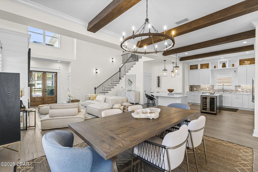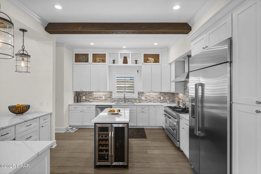 Fully furnished, No pets allowed. Coastal Elegance Just Steps from the Gulf in Bid-A-Wee!Welcome to 407 Petrel Ave, where beachside living meets modern luxury. Perfectly situated just a short stroll from the Gulf, this beautifully customized home offers stunning Gulf views so you can soak in the coastal vibe from sunrise to sunset.Inside, you'll find thoughtful design and upscale finishes throughout. The open-concept living space features soaring ceilings with exposed wood beams and a cozy fireplace, creating a warm yet refined coastal aesthetic. The chef's kitchen is fully equipped with commercial-grade stainless appliances, a gas range, double ovens, a walk-in pantry, a wine fridge, and a massive island--perfect for entertaining family and friends. There's also a custom wet bar for cocktail hour, and built-in closets throughout the home, including in the garage.This property offers four spacious bedrooms and three luxurious baths, including a stunning primary suite. The master bathroom is a true retreat with a walk-in shower, soaking tub, elegant fixtures, and striking designer finishes.Step outside to your private backyard oasis, where you'll find a heated jacuzzi/pool surrounded by travertine tile, lush tropical landscaping, and a putting green with artificial turf. The outdoor kitchen and bar area include seating, a built-in grill, a sink, and a mounted TV, creating the perfect spot for game days, gatherings, or relaxing evenings under the stars.For added convenience, there's a full outdoor bathroom with a shower--perfect after a beach day or pool party. The oversized garage includes custom cabinetry with a rolling ladder, giving you all the extra storage you need while keeping the space neat and organized. Privacy fencing surrounds the property for a true backyard escape, and there's plenty of parking for guests or golf carts.Whether you're looking for a primary home, a beach getaway, or an investment property, 407 Petrel Ave delivers the best of coastal living with all the luxury upgrades.