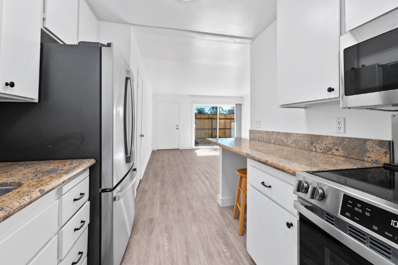 Property Id: 2083947 Minutes to some of Southern California's most beautiful beaches. (Moonlight Beach 1.1 miles). Close to downtown Old Encinitas with shopping and wonderful restaurants. This charming spacious one bedroom with walk in closet plus bonus room (den, office, nursery), full bath (tub and shower) includes all new paint, new vinyl windows, new luxury flooring through out and all new appliances. This special home has a new fence to give added privacy to the patio for your outdoor enjoyment. The unit is ground level, and you will walk out your front door to a beautiful luscious green belt area. This is a gated community with two assigned parking spaces. Added BONUS trash and water included with rent!!! No Smoking or vaping of any substance. Pet under 25 lbs. on approval with references and additional pet deposit. Must carry proper rental insurance. We adhere to all Fair Housing laws and support animal laws with proper paperwork.