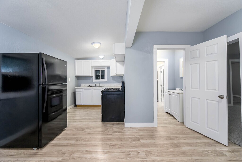 Updated 4 bed 1 bath home for rent with off street parking and large yard. Home just went through a full renovation and has new vinyl windows, paint, carpet, LVP, bathroom, kitchen, HVAC, electrical and plumbing. Stove and fridge are supplied by owner. Washer and dryer hookups in laundry room. Central heat and air. Tenant pays all utilities. 1/2 off deposit for move in special for May. Owner is a licensed Realtor in KS. Apply & see other openings on: