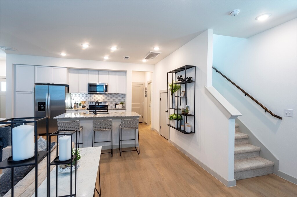 Welcome to Inspire Homes,a boutique townhome community in the heart of Missouri City. This stylish 3-bedroom,2.5-bath home offers modern living with high-end finishes,including quartz countertops,sleek cabinetry,and stainless steel appliances. The open-concept layout is perfect for entertaining,and the attached 2-car garage adds everyday convenience. Smart home features and energy-efficient design enhance the appeal. Enjoy easy access to Hwy 90,Fort Bend Tollway,and nearby shopping,dining,and parks—making your commute and weekend plans a breeze! Please note: Photos provided are of the model home and may not reflect the exact floor plan or finishes of the available unit. MLS# 82028234
