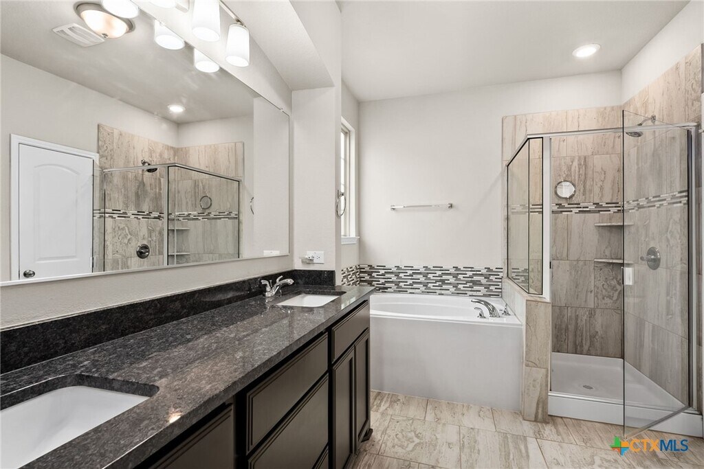 Welcome to your dream home in the desirable Three Creeks Subdivision of Belton,TX! This stunning property offers 4 spacious bedrooms and 3.5 bathrooms,perfect for comfortable living. The primary bathroom is a true oasis,featuring a double vanity,separate shower,and a luxurious garden tub. The kitchen is a chef's delight,boasting sleek black appliances and beautiful granite countertops. With two dining rooms,there's ample space for entertaining and enjoying meals. The home's flooring is a tasteful mix of carpet and vinyl plank,adding to its overall charm. The exterior is just as impressive,with a wood privacy fence providing a sense of seclusion. As a special offer,enjoy 1 MONTH FREE RENT when you move in! Don't miss out on this incredible opportunity to make this house your home.