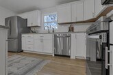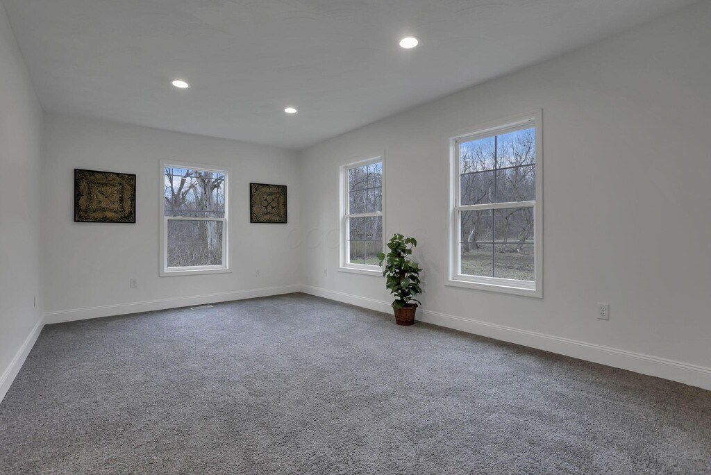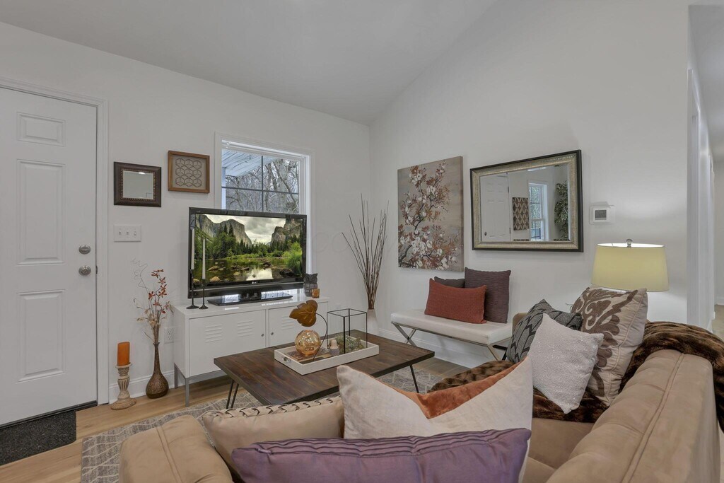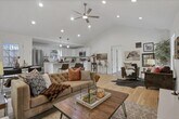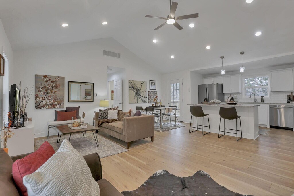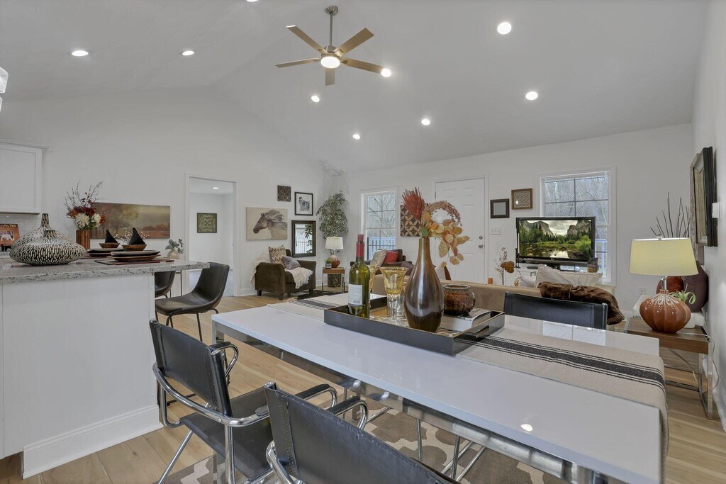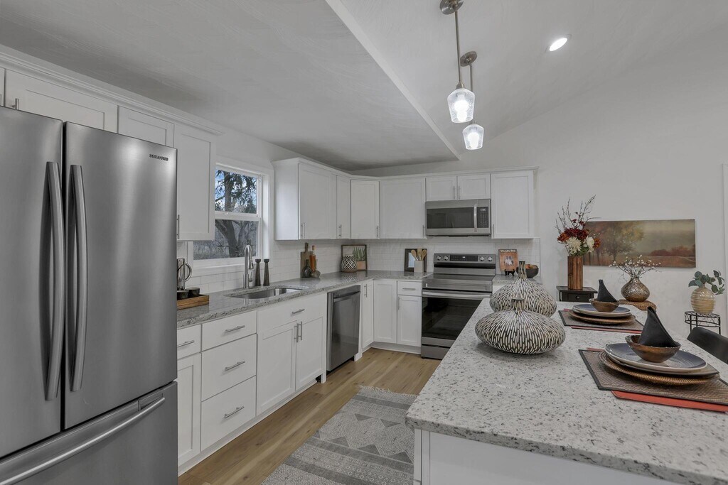 As you drive up the driveway,you will notice the peaceful pond to the right and a large,freshly painted front porch welcoming you home. Step inside to an open-concept living room and kitchen boasting cathedral ceilings and an abundance of natural light. The kitchen features newer appliances,updated cabinetry,brand-new granite countertops,and a spacious eat-in island-perfect for gatherings. This home has been freshly painted throughout and includes updated light fixtures,newer LVP flooring,and new carpet in the bedrooms. To the right of the living room,you'll find the generous primary suite complete with a large walk-in closet and full ensuite bath featuring a waterfall shower. Continue through the rest of the home to discover three additional spacious bedrooms and a second full bathroom. Step out the back door into a private outdoor space overlooking a peaceful stream. Enjoy your evenings on the front porch over looking the wooded lot extending toward the pond-ideal for anyone seeking nature and quiet.