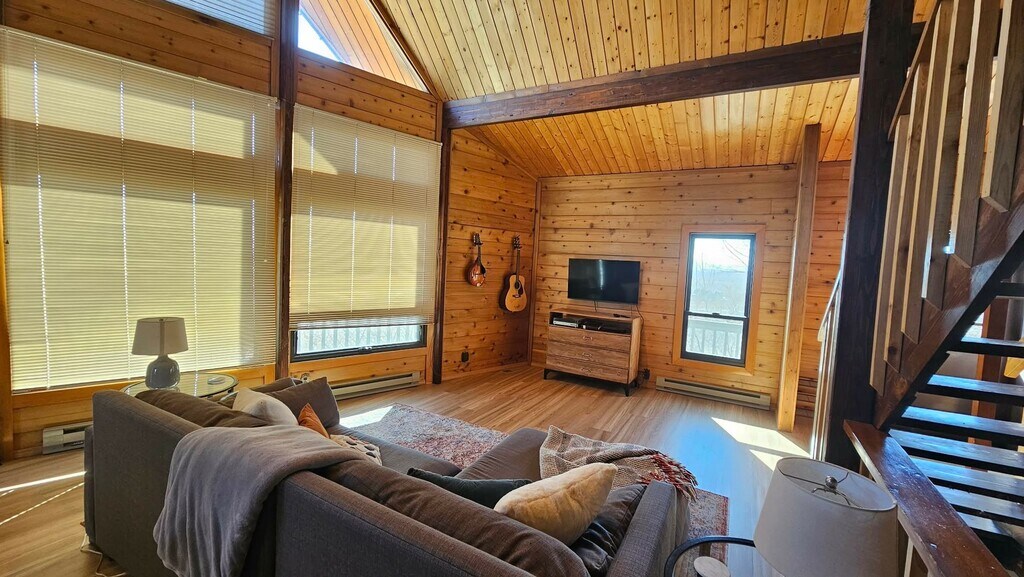 This scenic lake view house offers 3 bedrooms- 2 on the main floor and one in the basement, in the loft there's a built in sleeping bunks as well. As well as 2 baths- one on the main level and one in the basement. There is a warm wood fireplace for cozy evenings located in the basement. There is a washer and dryer for convenience, provided but not guaranteed. Large windows capture the surroundings, and the property provides a straightforward, well-maintained living space ideal for those seeking easy access to outdoor lake scenery. This property can be rented a couple different ways. The owners would rent it furnished as is or it can be unfurnished. There is a small garage that we can include or not. The kitchen is equipped with a propane stove for cooking. Tenant will be responsible for electric, propane and trash. Water in on a community well and owner will pay unless it goes over the amount allowed, tenant will be charged. Tenant is responsible for lawn care and snow removal. There is also a hot tub that can be set up and used for an additional fee.