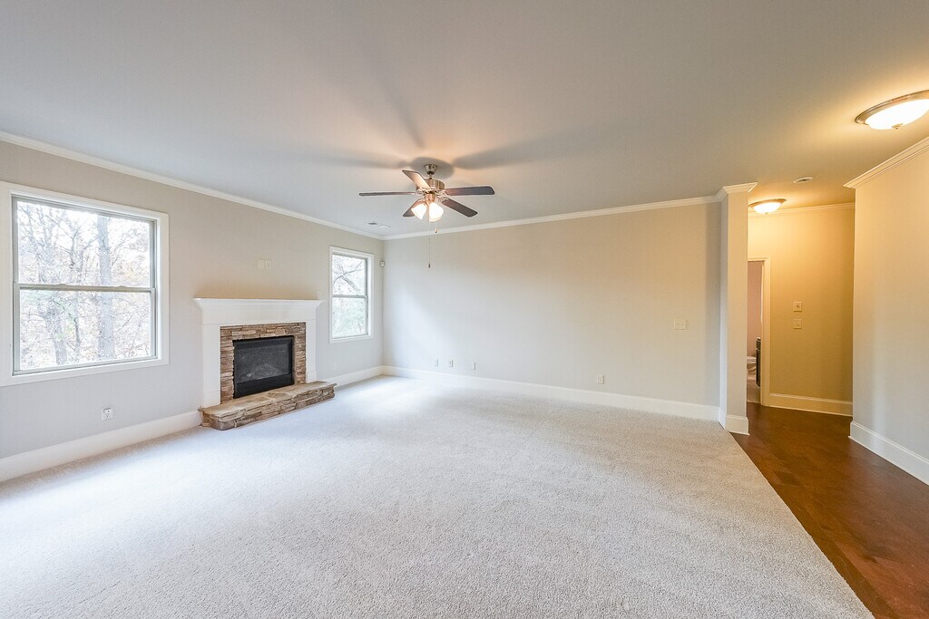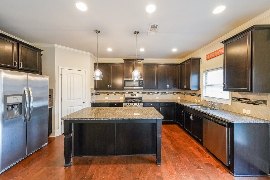 Large Finished Basement Main-Level Guest Suite Resort-Style Amenities Welcome home to this exceptional Craftsman-style residence located in the highly sought-after Great Sky community in Canton, known for its rolling hills, scenic mountain views, and resort-style amenities. This move-in-ready home offers generous space, flexible living options, and an outstanding lifestyle, making it ideal for families, professionals, or multi-generational living. The home features fresh neutral paint, elegant finishes, and a bright open-concept layout designed for everyday comfort and easy entertaining. A welcoming covered front porch leads into a two-story foyer with hardwood floors, opening to a formal dining room with a coffered ceiling and custom trim perfect for hosting gatherings or family dinners. The fireside living room is filled with natural light and offers peaceful views of the private backyard. The gourmet kitchen includes granite countertops, stainless steel appliances, a gas range and oven, custom cabinetry, a walk-in pantry, and a large island with a breakfast bar ideal for casual meals or entertaining. A main-level guest bedroom with a full en-suite bath provides excellent flexibility for guests, extended family, or a private home office. Upstairs, the oversized primary suite is a true retreat, featuring a tray ceiling, space for a sitting area, and a spa-style bath with soaking tub, walk-in shower, double vanity, and a large walk-in closet. Two additional bedrooms, a full bath, and a spacious bonus/media room complete the upper level. The finished terrace level significantly expands your living space and includes: A fifth bedroom Additional living/flex area Home office space Game or media room Gym or hobby area Walk-out access to the backyard Perfect for guests, work-from-home needs, or recreation. Outdoor living is a standout feature, with two inviting spaces: A main-level deck for grilling and outdoor dining A covered stone patio off the terrace level overlooking the fully fenced backyard, ideal for pets, play, or quiet relaxation Great Sky Community Amenities Include: Multiple swimming pools Clubhouse Pickleball & tennis courts Walking trails and parks Playground Community social events Conveniently located near shopping, dining, top-rated schools, I-575, downtown Canton, and easy access to the city or the mountains, this home offers the perfect blend of space, comfort, and lifestyle. Homes like this rarely come available for lease in Great Sky. Schedule your private showing today and experience everything this exceptional home has to offer.