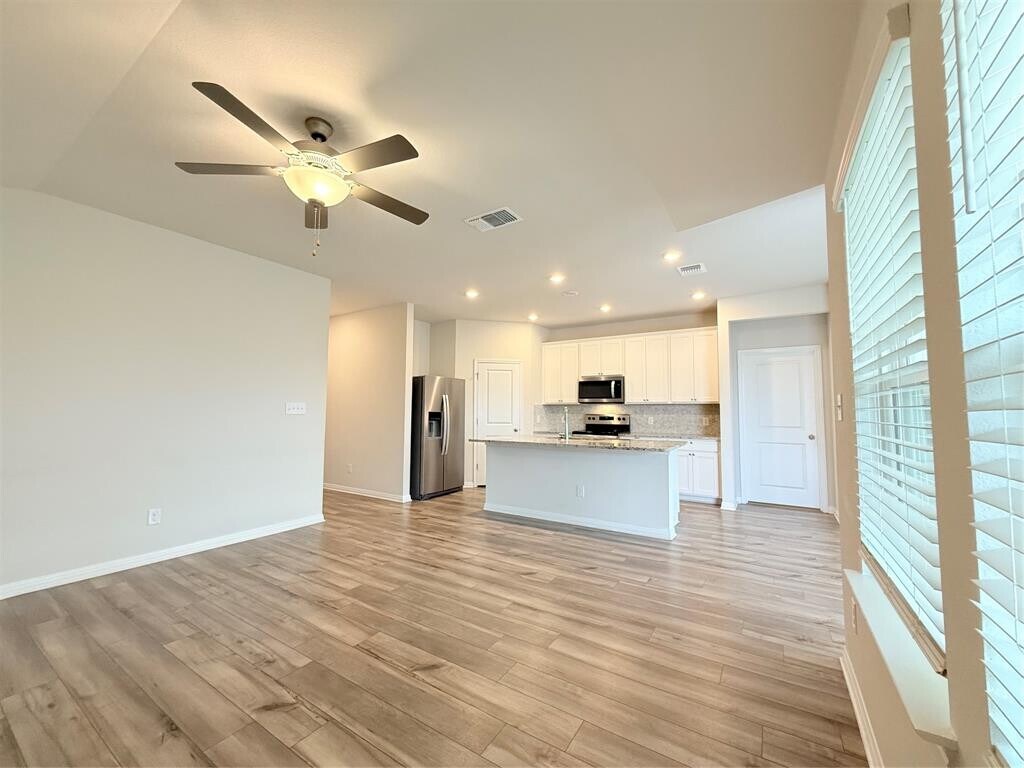 This charming one-story home in Hutto offers 3 spacious bedrooms and 2 full bathrooms. The open-concept floor plan features a large kitchen island and stainless steel appliances, creating the perfect space for modern living and entertaining. A covered patio extends your living area outdoors, ideal for relaxing or hosting gatherings. Conveniently located near Hutto Downtown, major employers, and shopping, this home also comes with a refrigerator already in place. Truly move-in ready!