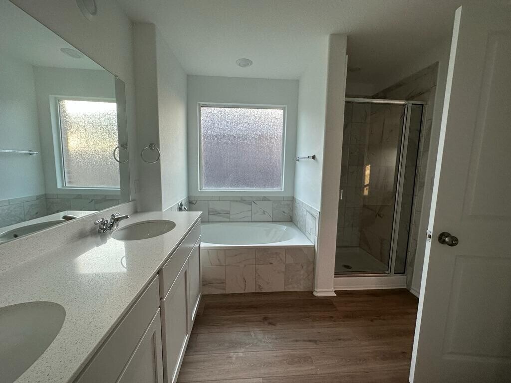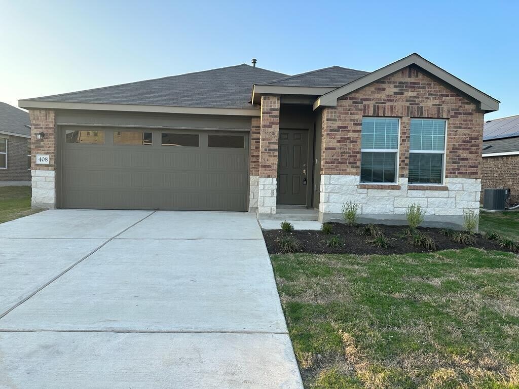 2023 Build 4 Bed 3 Bath beautiful home in the Whisper subdivision, nestled in the picturesque city of San Marcos, TX, just minutes from I-35, an easy commute to Austin, San Marcos, and San Antonio. This single-story home has an open layout where the kitchen, family room and dining area meet, with easy access to a covered patio in the backyard. Inviting kitchen w/granite counter top and stainless steel appliances. Brand new GE washer and dryer in the laundry room. The rest of the home features a master's suite with a full bathroom, three additional bedrooms . Residents have access to a park, swimming pool, fishing ponds, and hiking trail. Plus, the local area features plenty of parks, creeks, sports courts, restaurants, stores and everything else you need to live a comfortable lifestyle. Washer Dryer and Fridge is Included** House comes with solar with monthly 56$ extra for solar to be paid by tenant Owner pays HOA and Tenant pays for all utilities